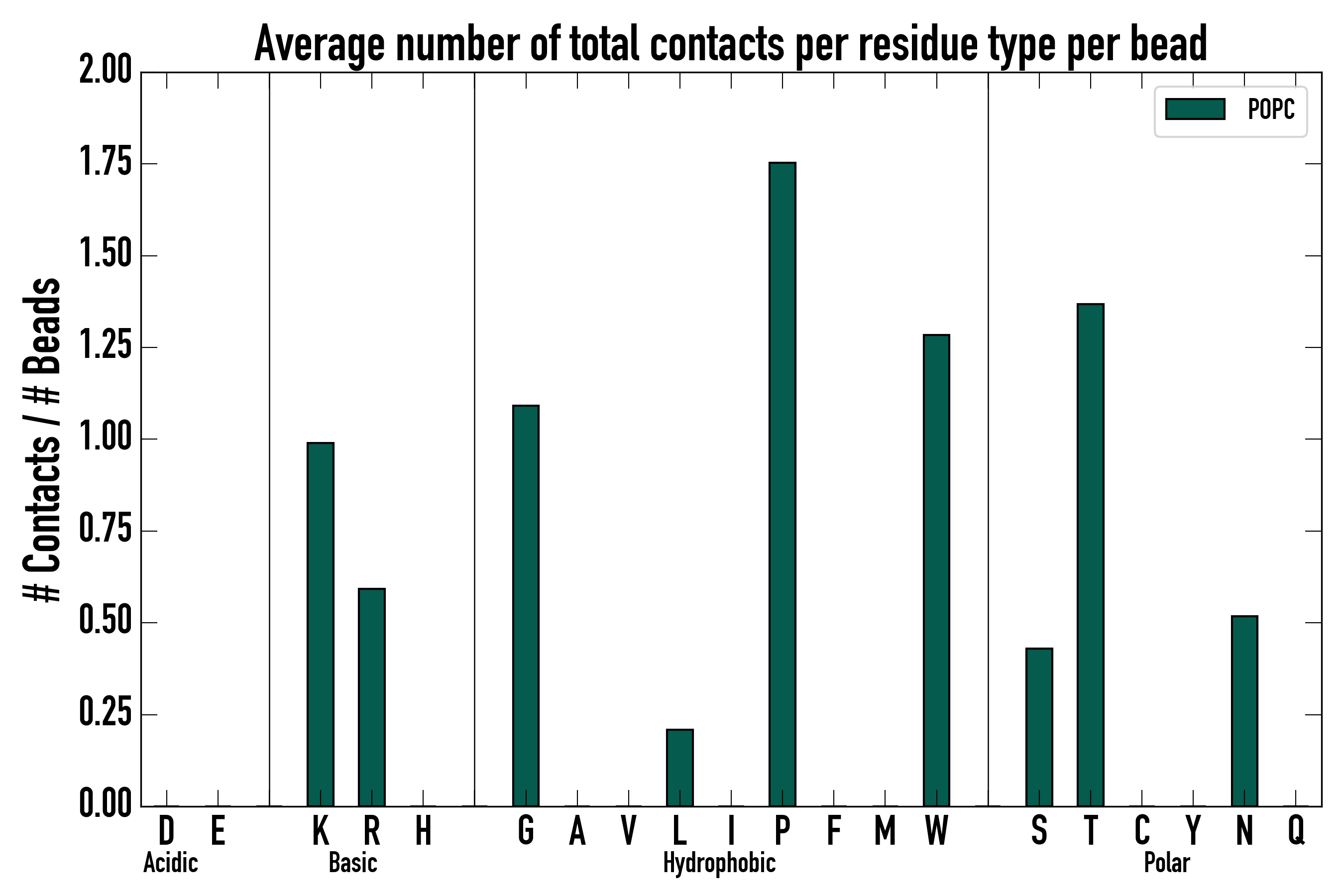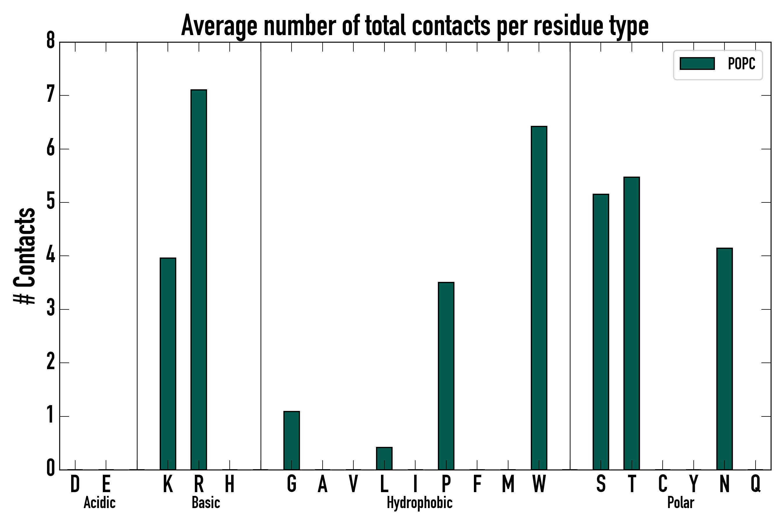 Number of total contacts per residue type: