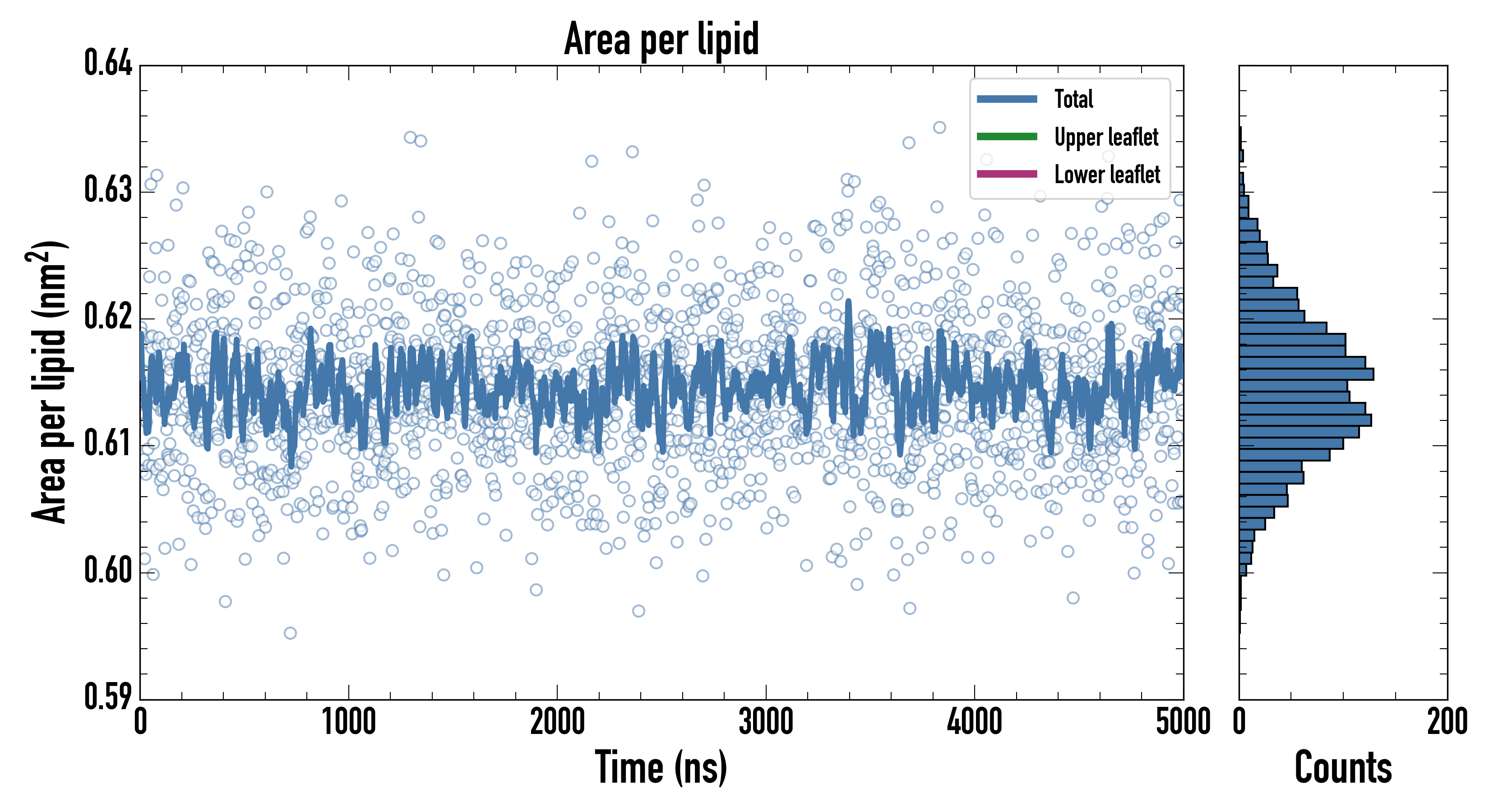 Upper leaflet (nm2): 0.61455800 ± 0.00106945