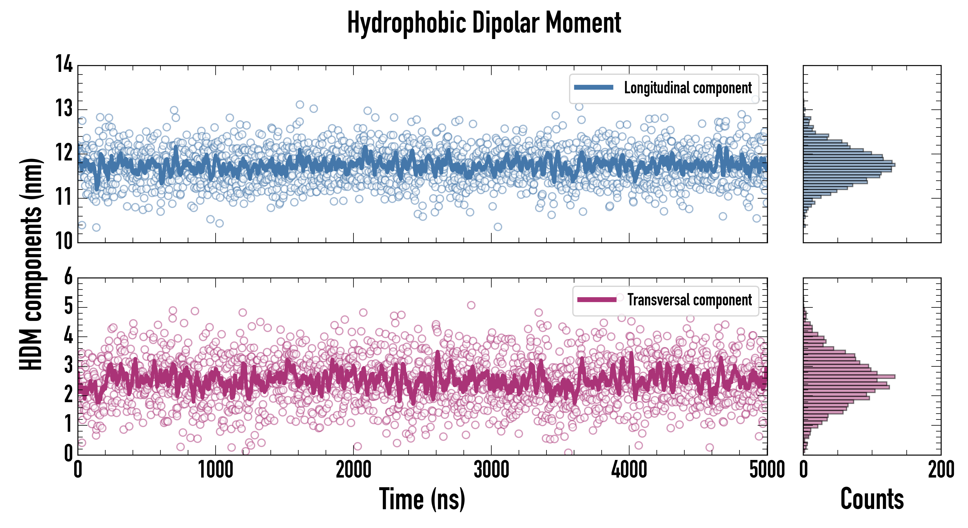 Longitudinal (e nm): 1.99 Transversal (e nm): 1.19 Hydrophobic Dipolar Moment (nm): 12.9