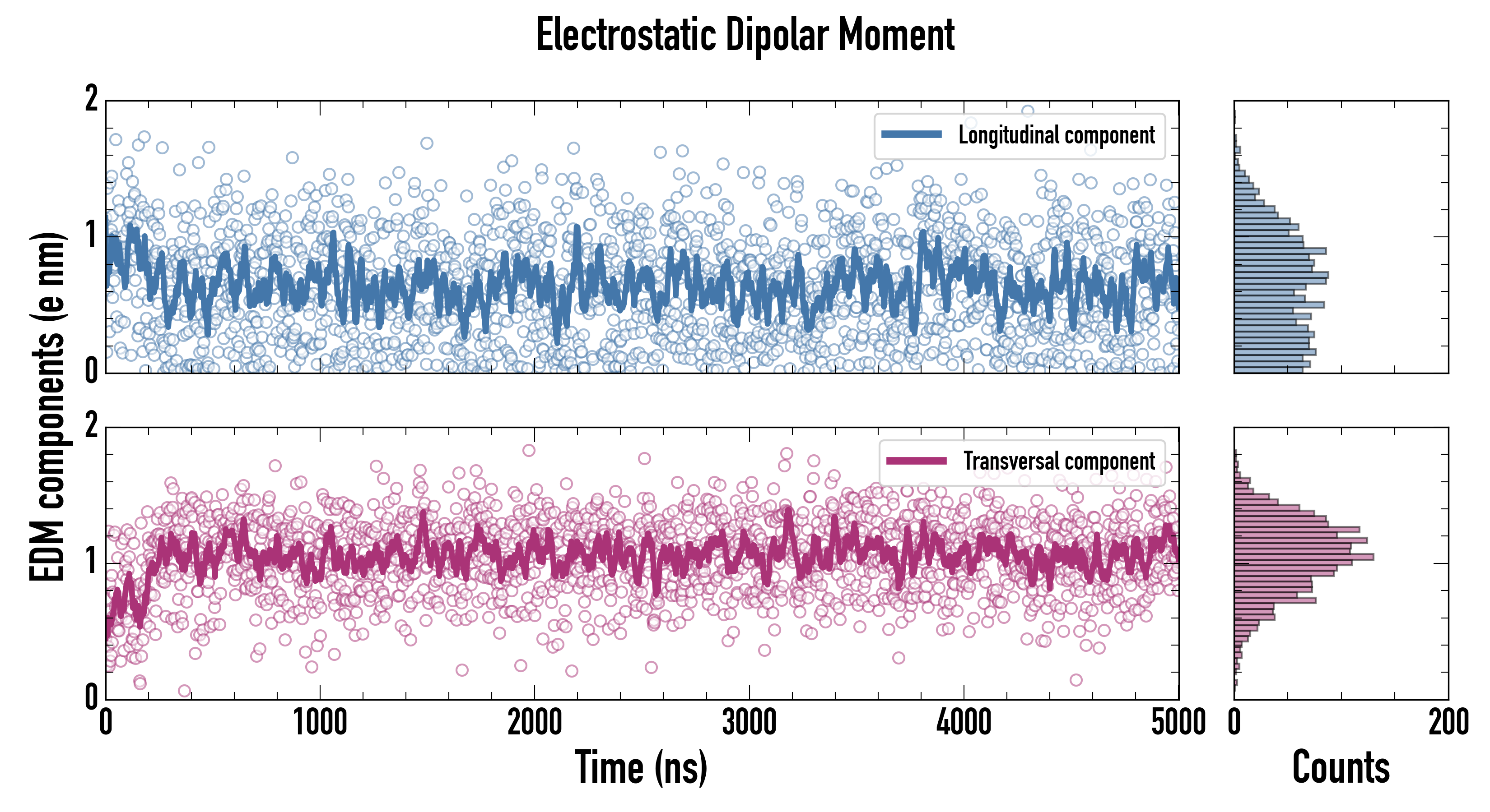 Longitudinal (e nm): 1.61 Transversal (e nm): 0.28 Hydrophobic Dipolar Moment (nm): 37.5