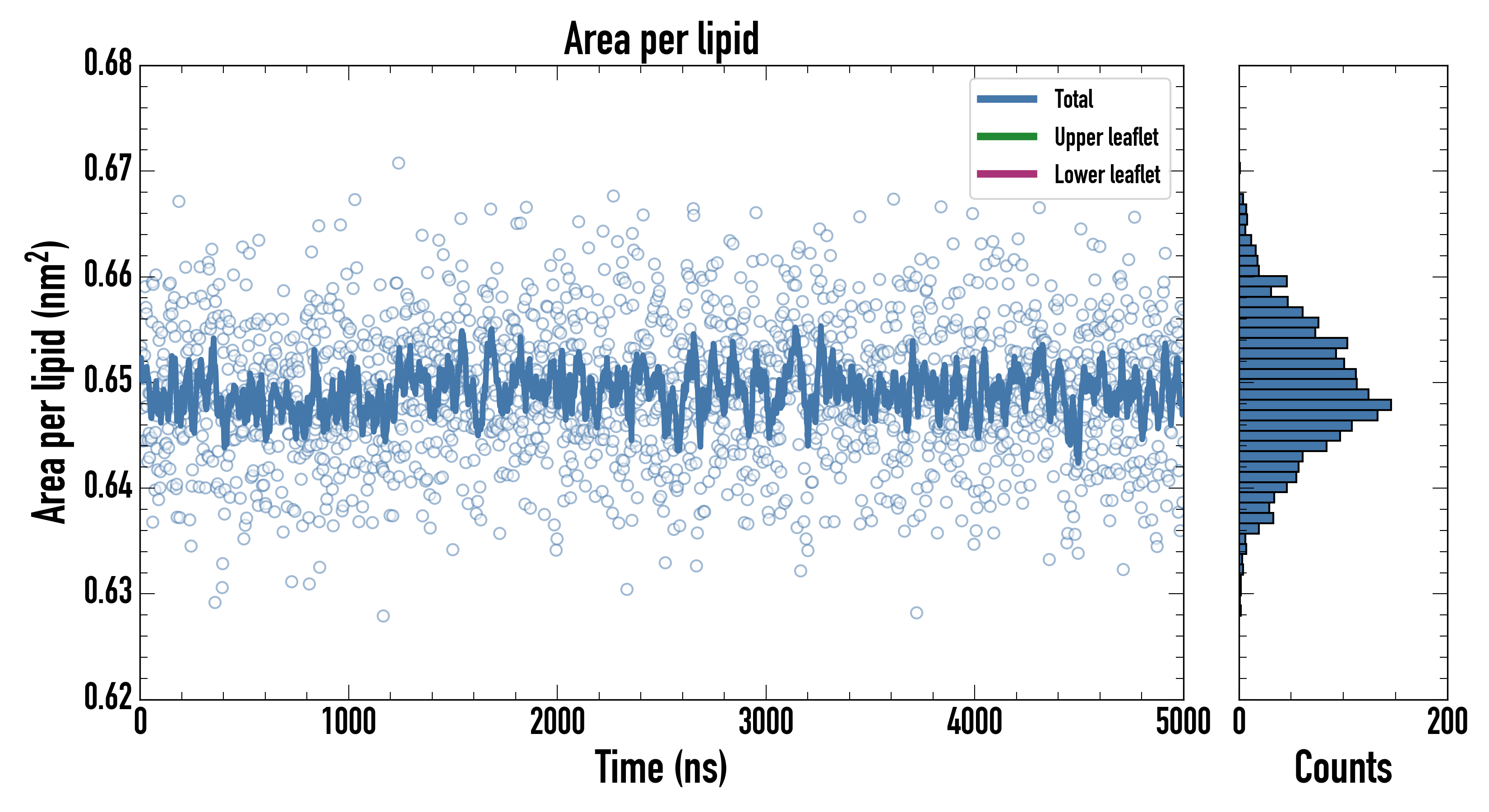 Upper leaflet (nm2): 0.64915000 ± 0.00108977