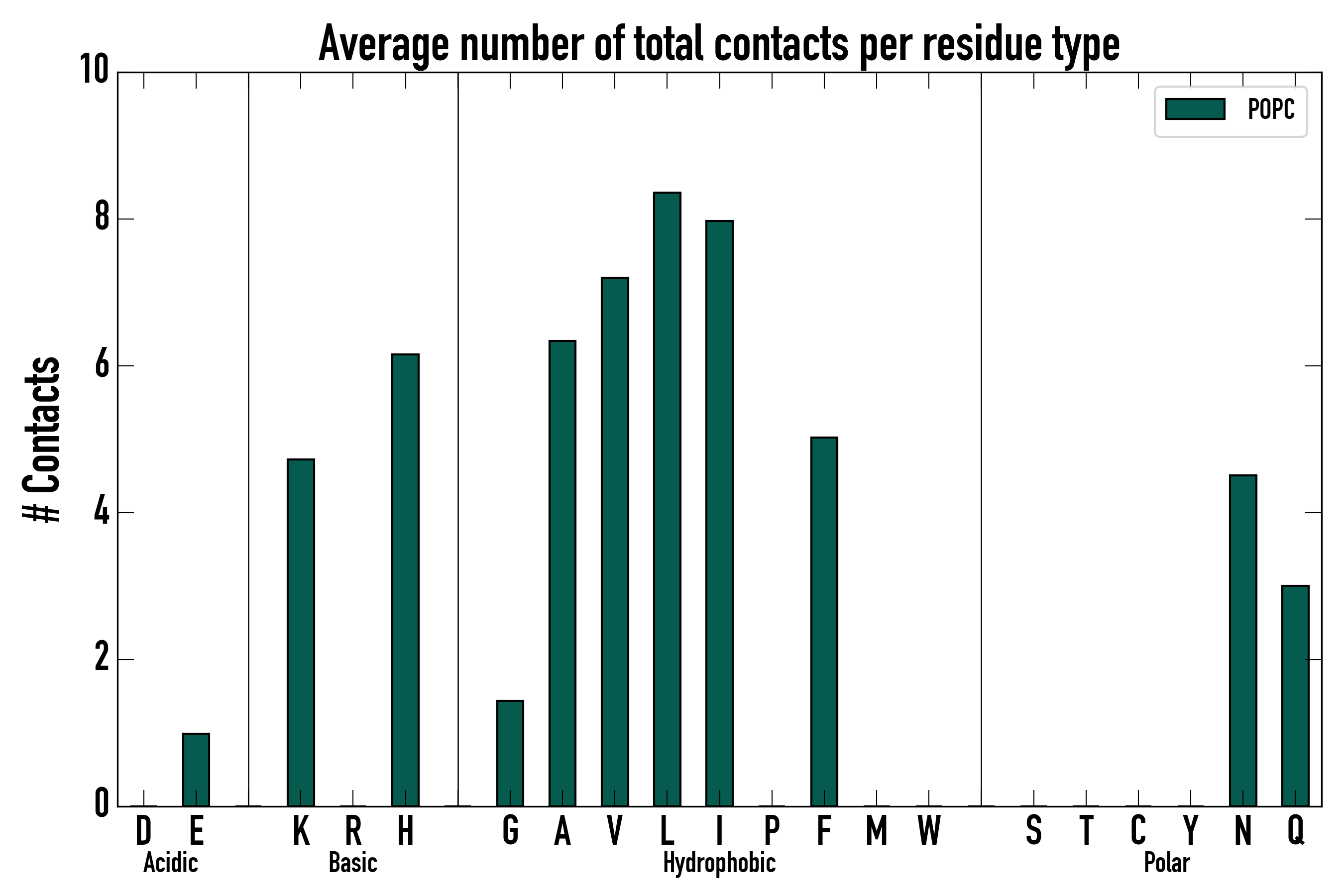 Number of total contacts per residue type: