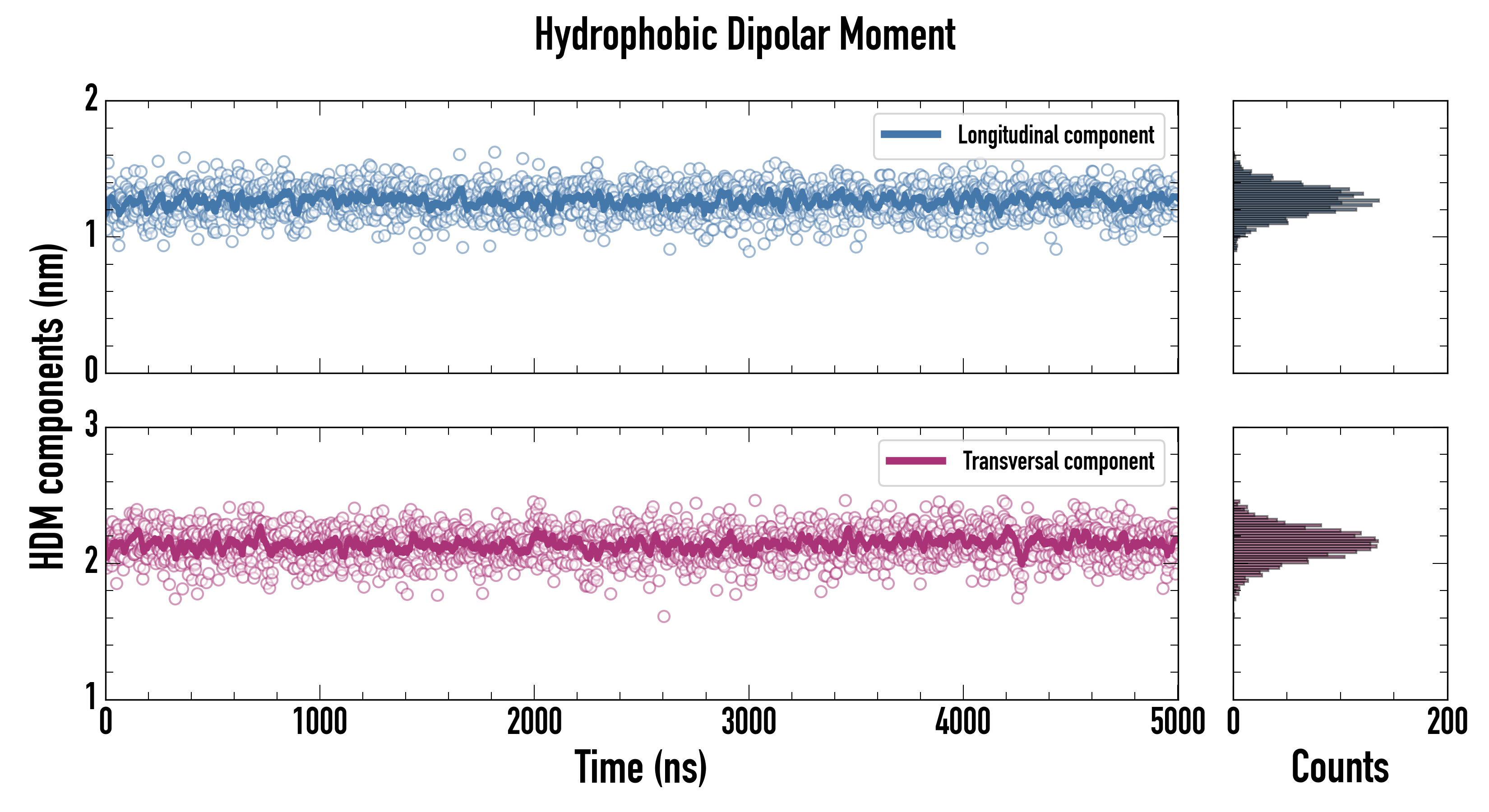 Longitudinal (e nm): 5.89 Transversal (e nm): 1.29 Hydrophobic Dipolar Moment (nm): 2.74