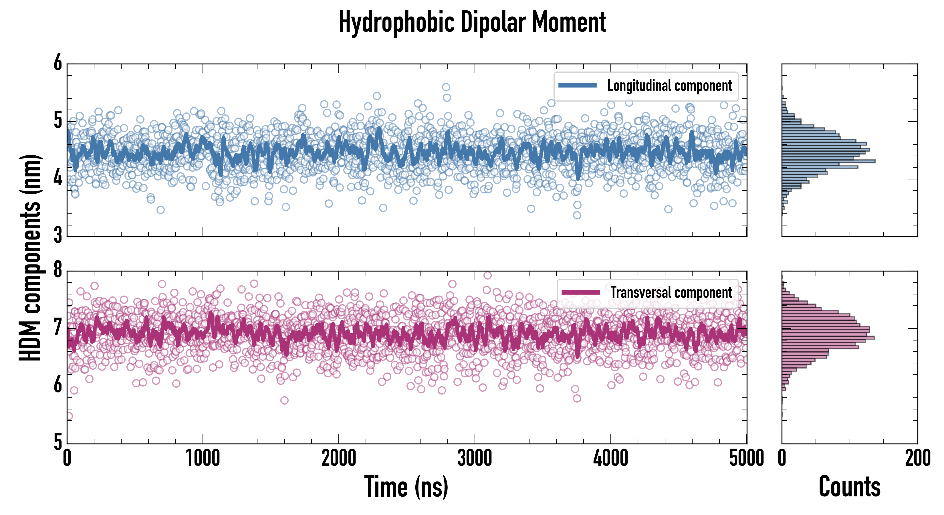 Longitudinal (e nm): 2.88 Transversal (e nm): 1.7 Hydrophobic Dipolar Moment (nm): 8.46