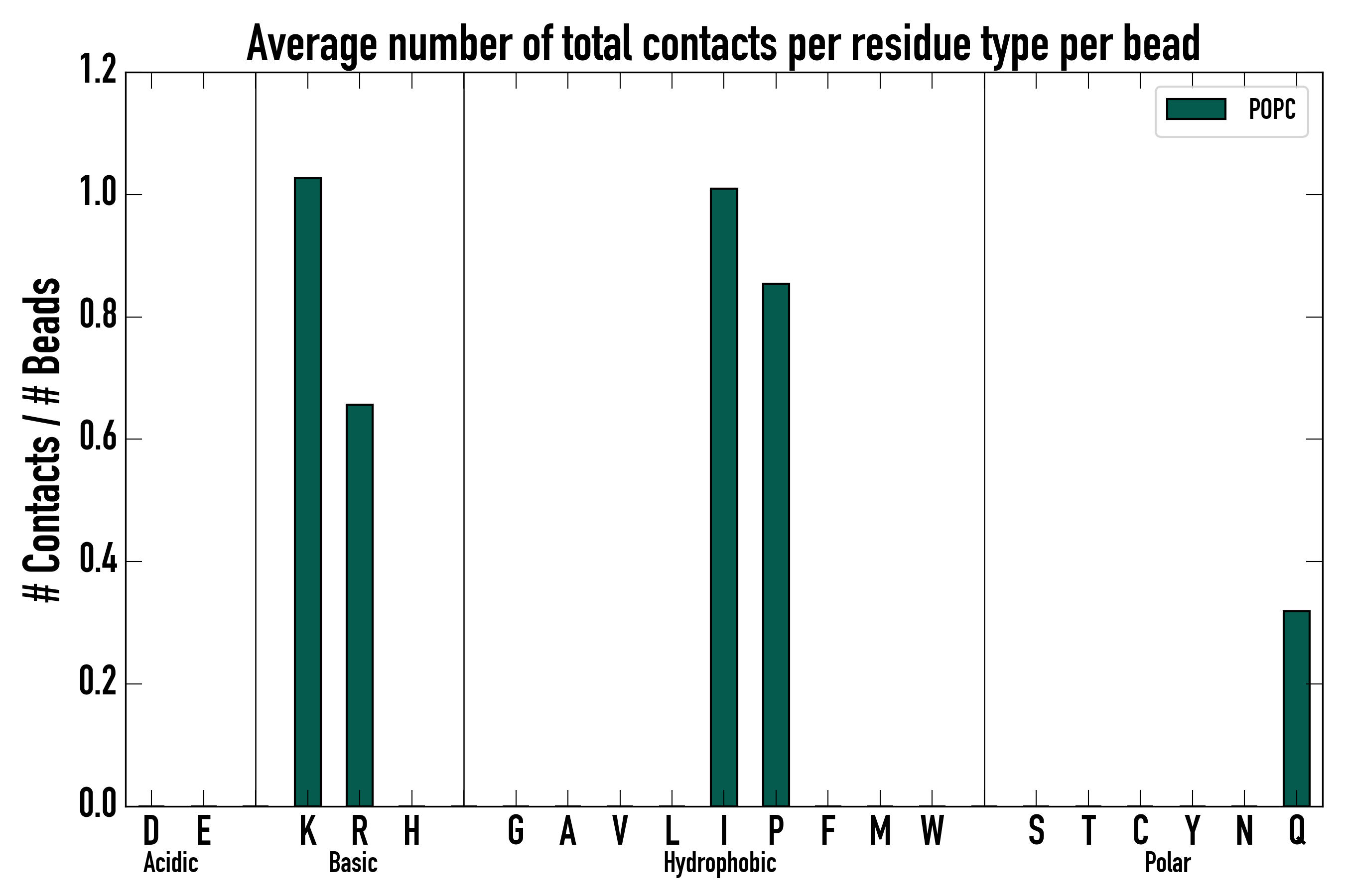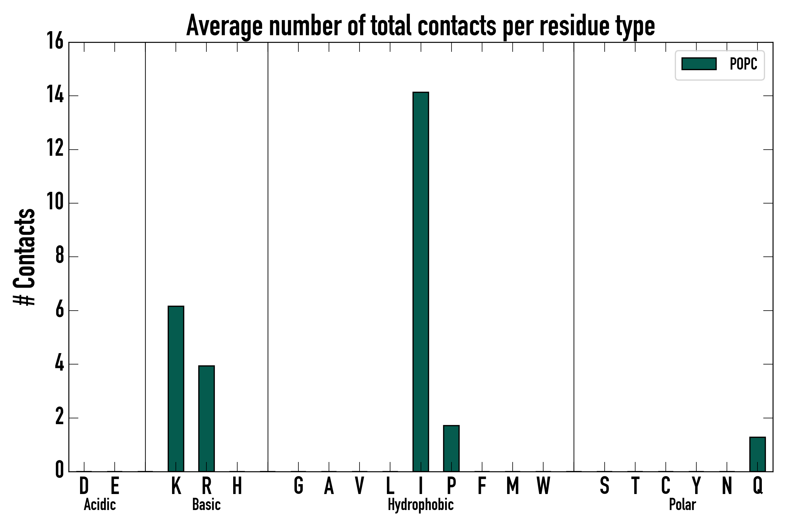 Number of total contacts per residue type: