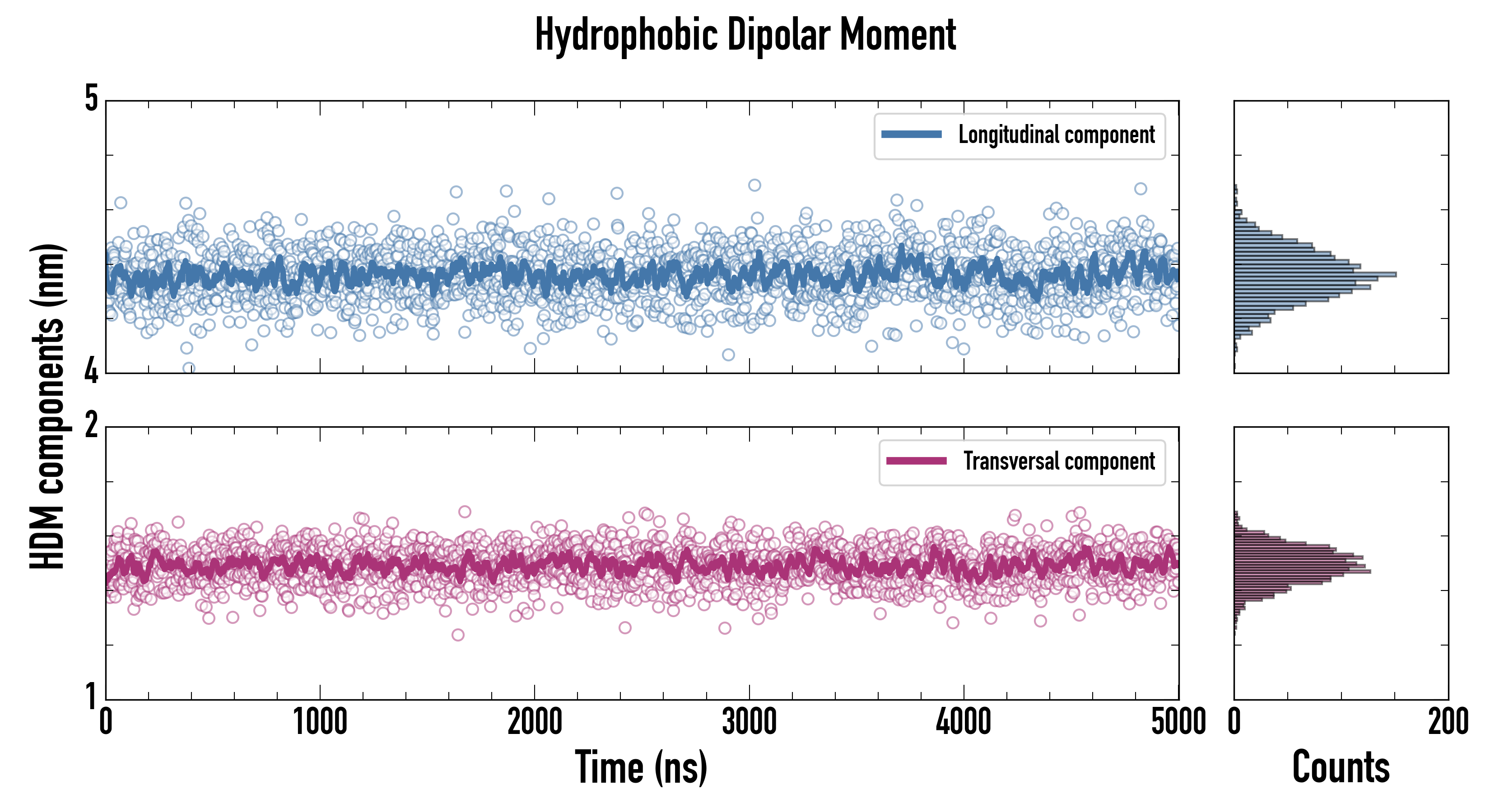 Longitudinal (e nm): 1.95 Transversal (e nm): 0.99 Hydrophobic Dipolar Moment (nm): 4.62