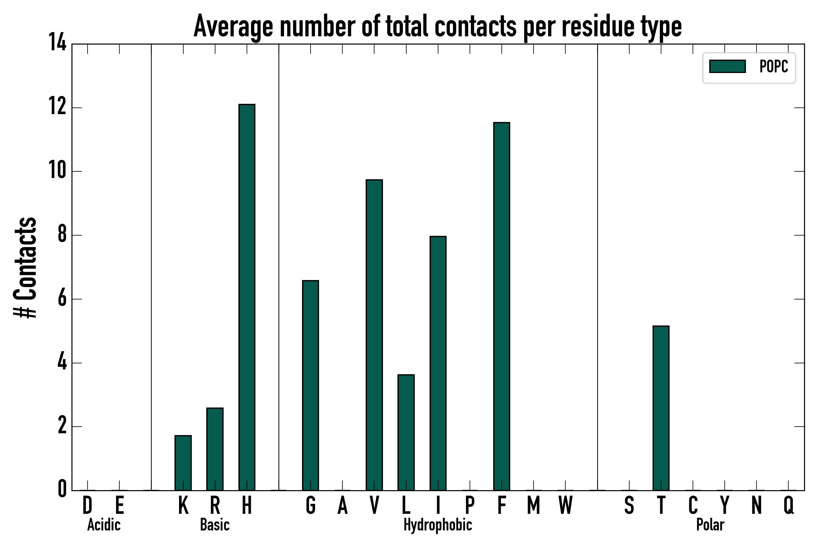 Number of total contacts per residue type: