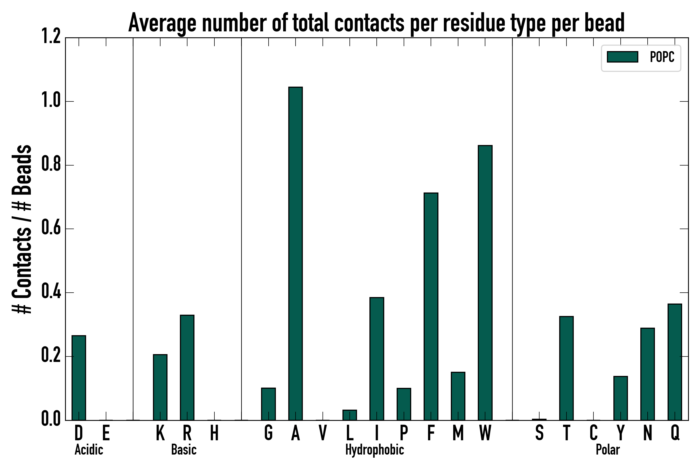 Number of total contacts per residue type: