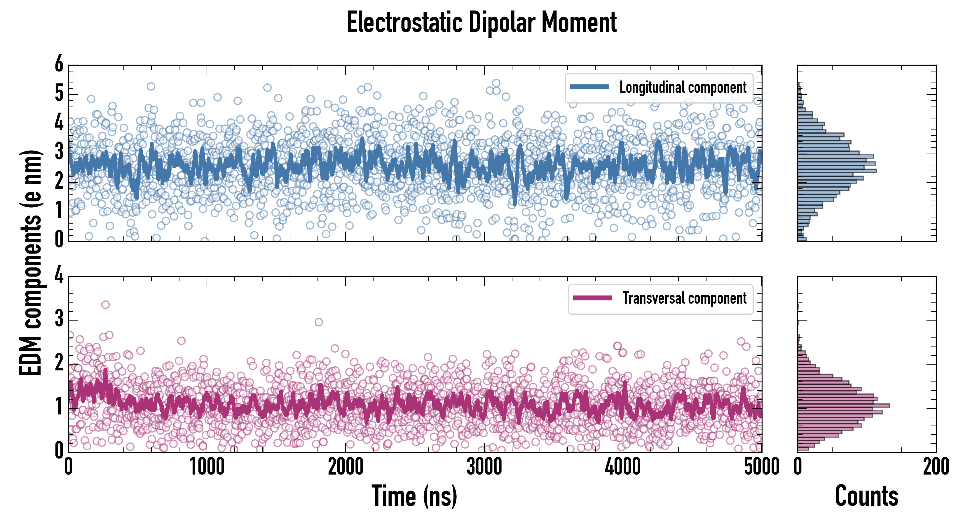 Longitudinal (e nm): 4.3 Transversal (e nm): 1.57 Hydrophobic Dipolar Moment (nm): 2.28