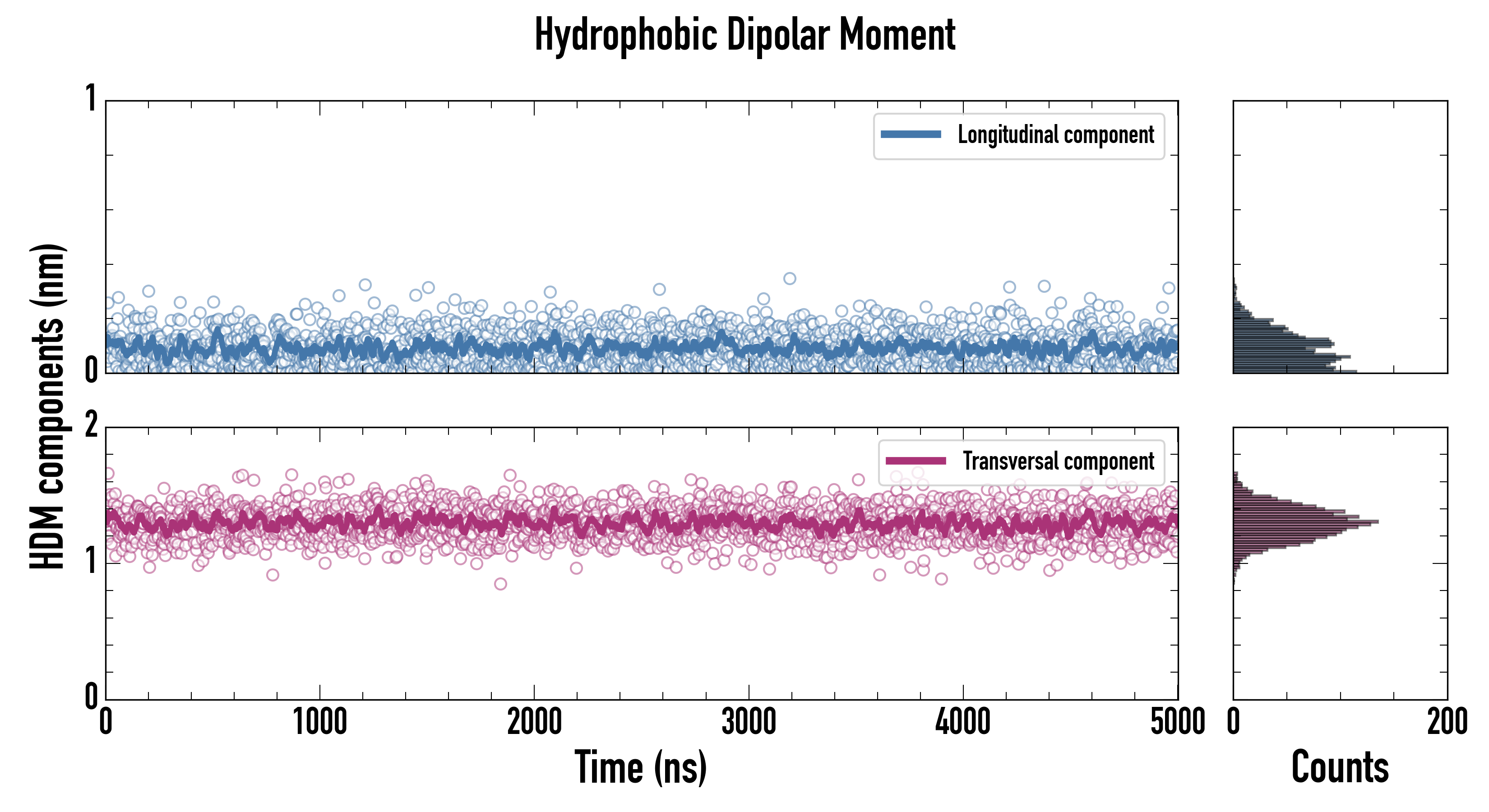 Longitudinal (e nm): 2.57 Transversal (e nm): 0.91 Hydrophobic Dipolar Moment (nm): 1.11