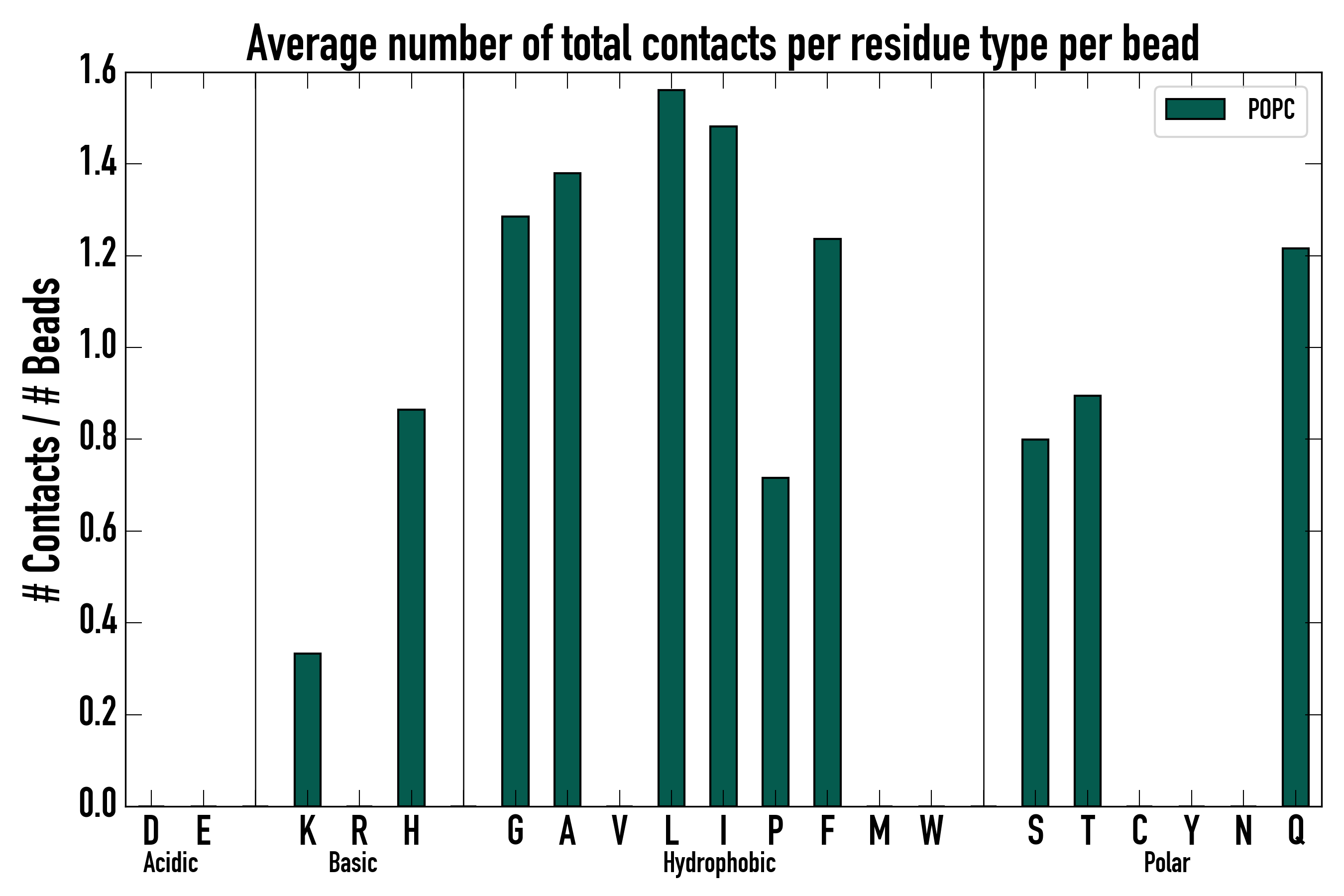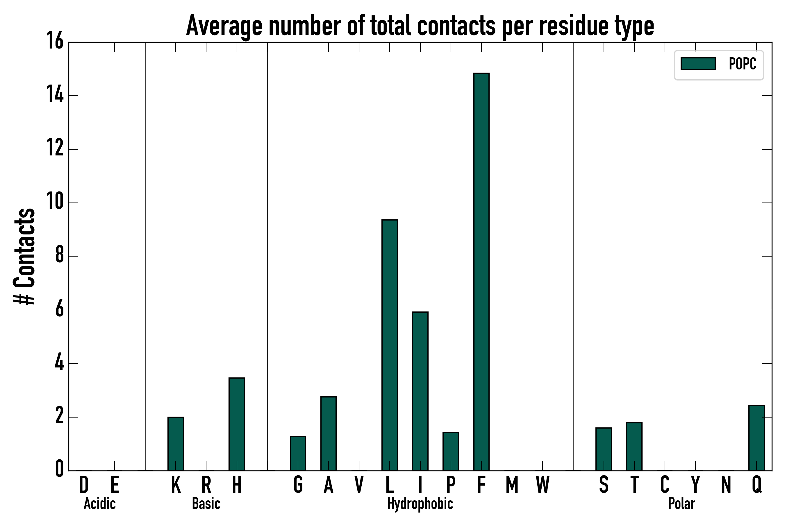 Number of total contacts per residue type: