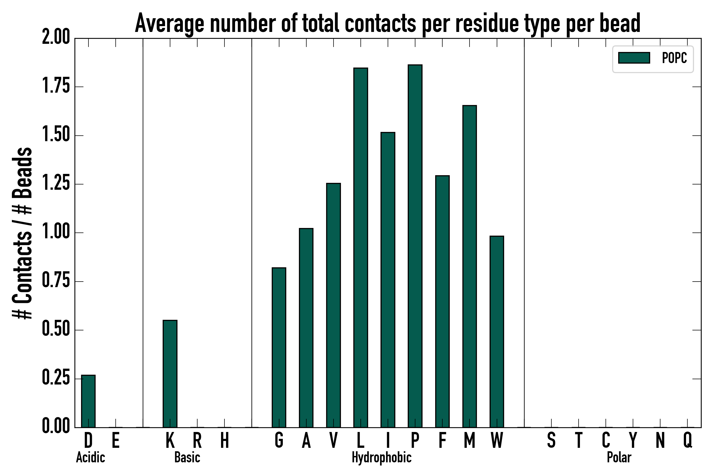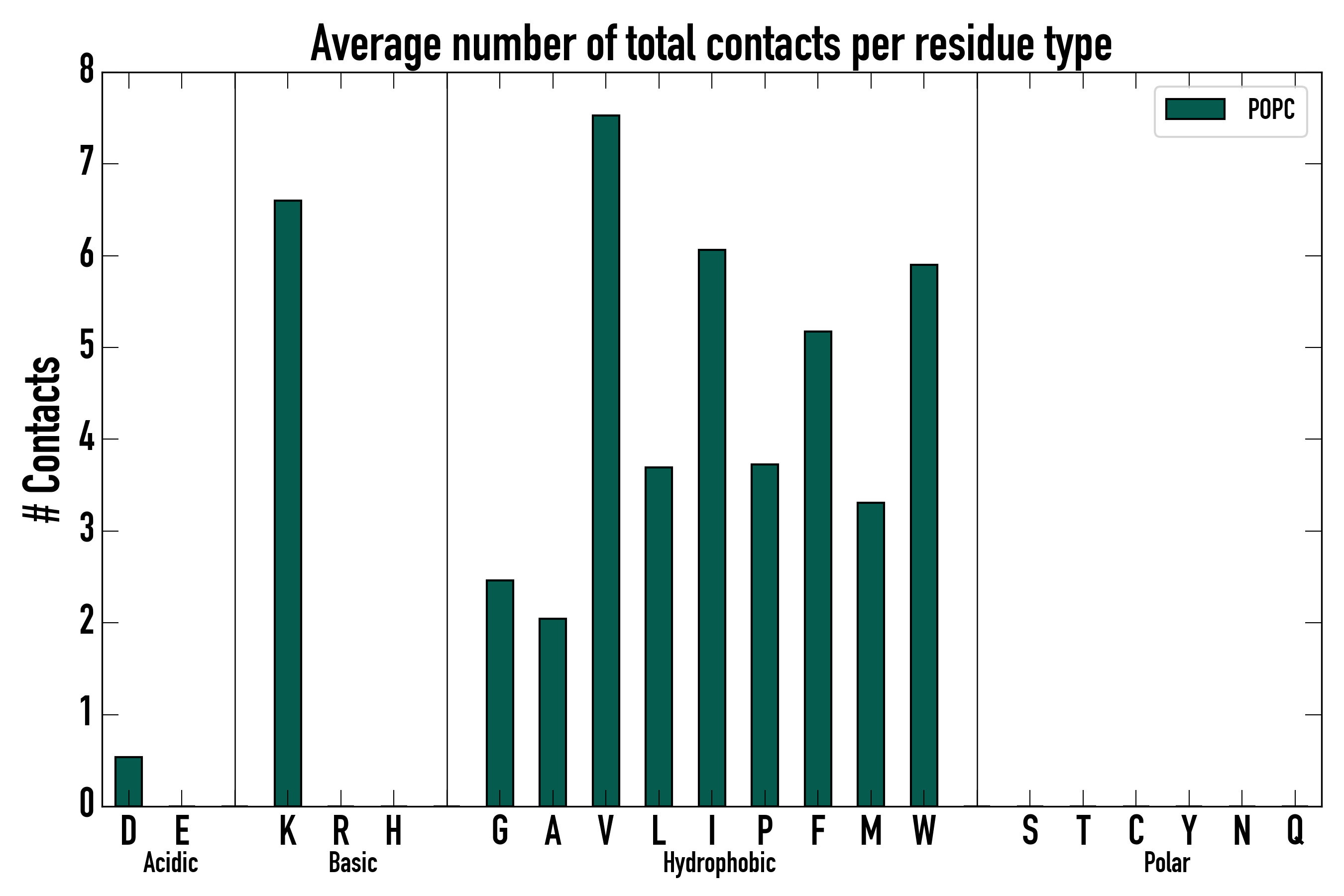 Number of total contacts per residue type: