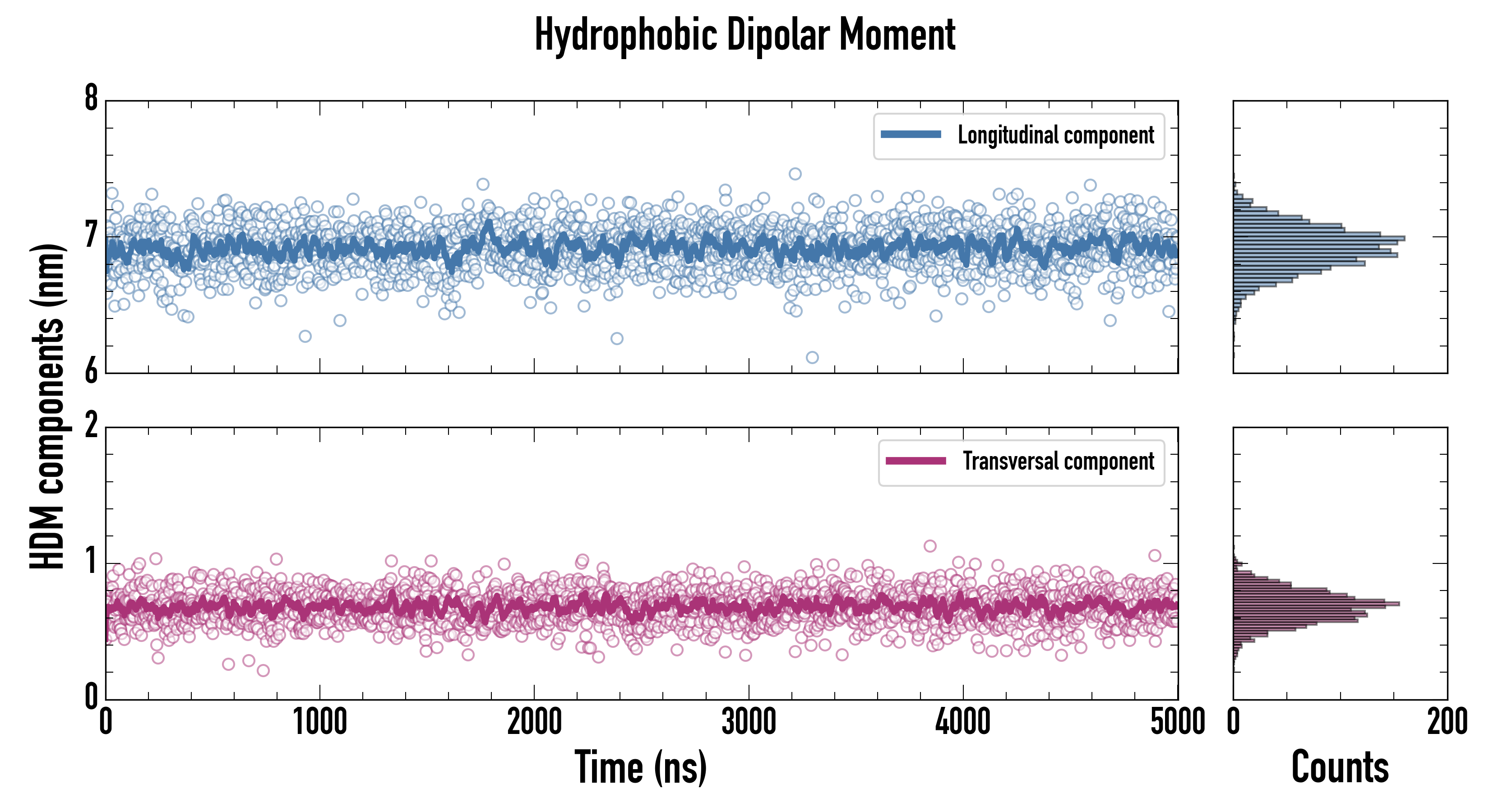 Longitudinal (e nm): 1.96 Transversal (e nm): 1.44 Hydrophobic Dipolar Moment (nm): 7.3