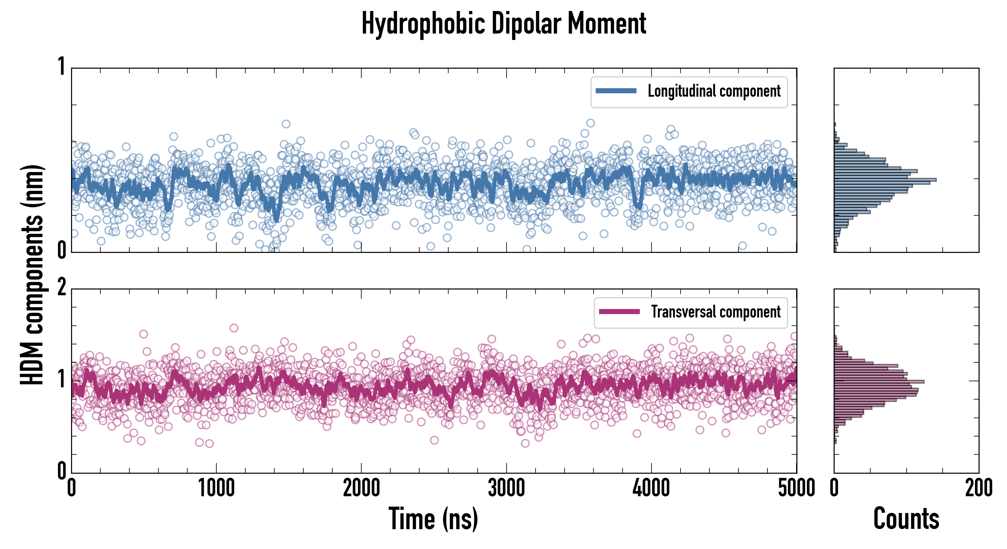 Longitudinal (e nm): 0.81 Transversal (e nm): 0.49 Hydrophobic Dipolar Moment (nm): 1.36