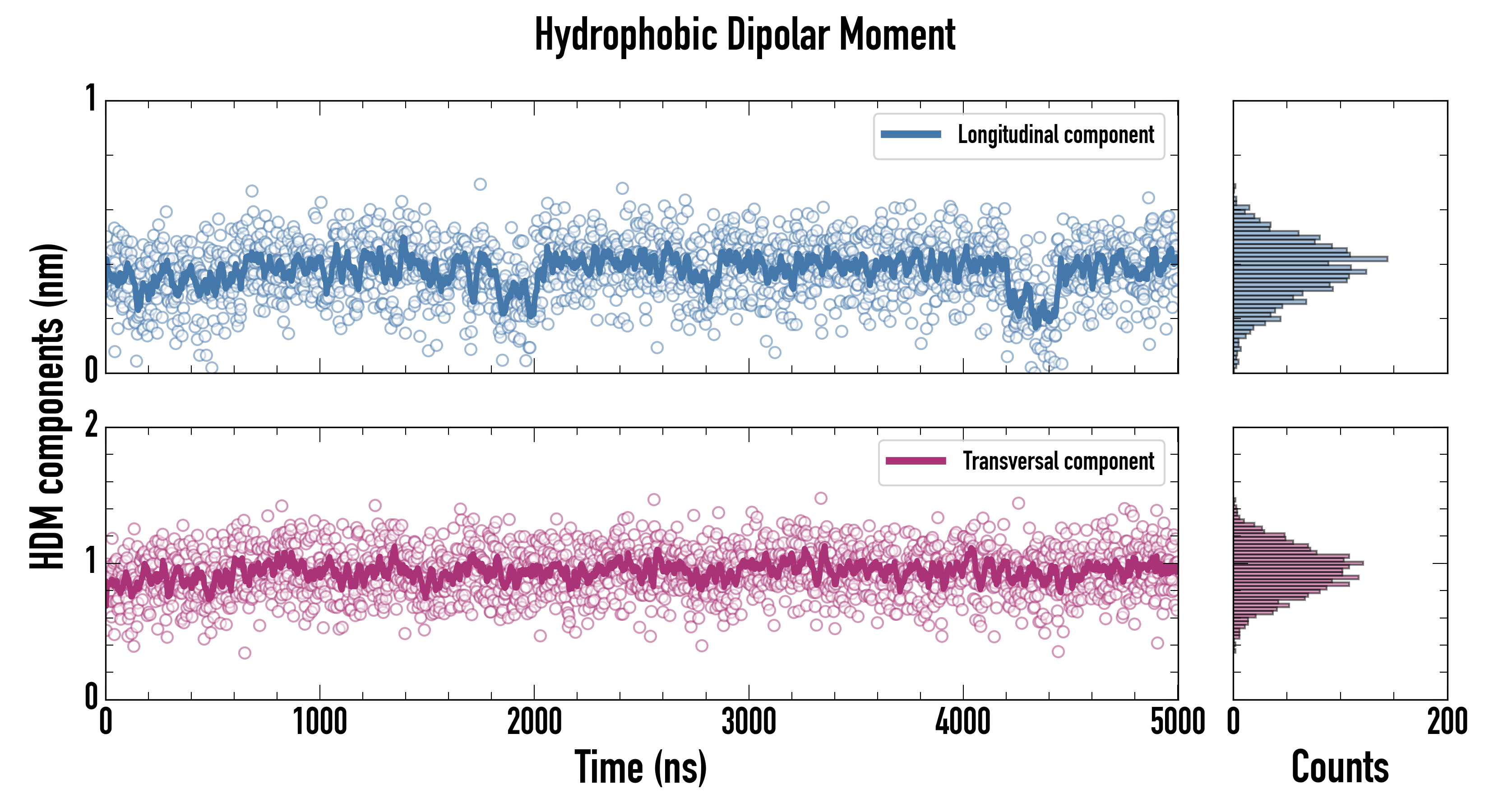 Longitudinal (e nm): 0.81 Transversal (e nm): 0.49 Hydrophobic Dipolar Moment (nm): 1.36