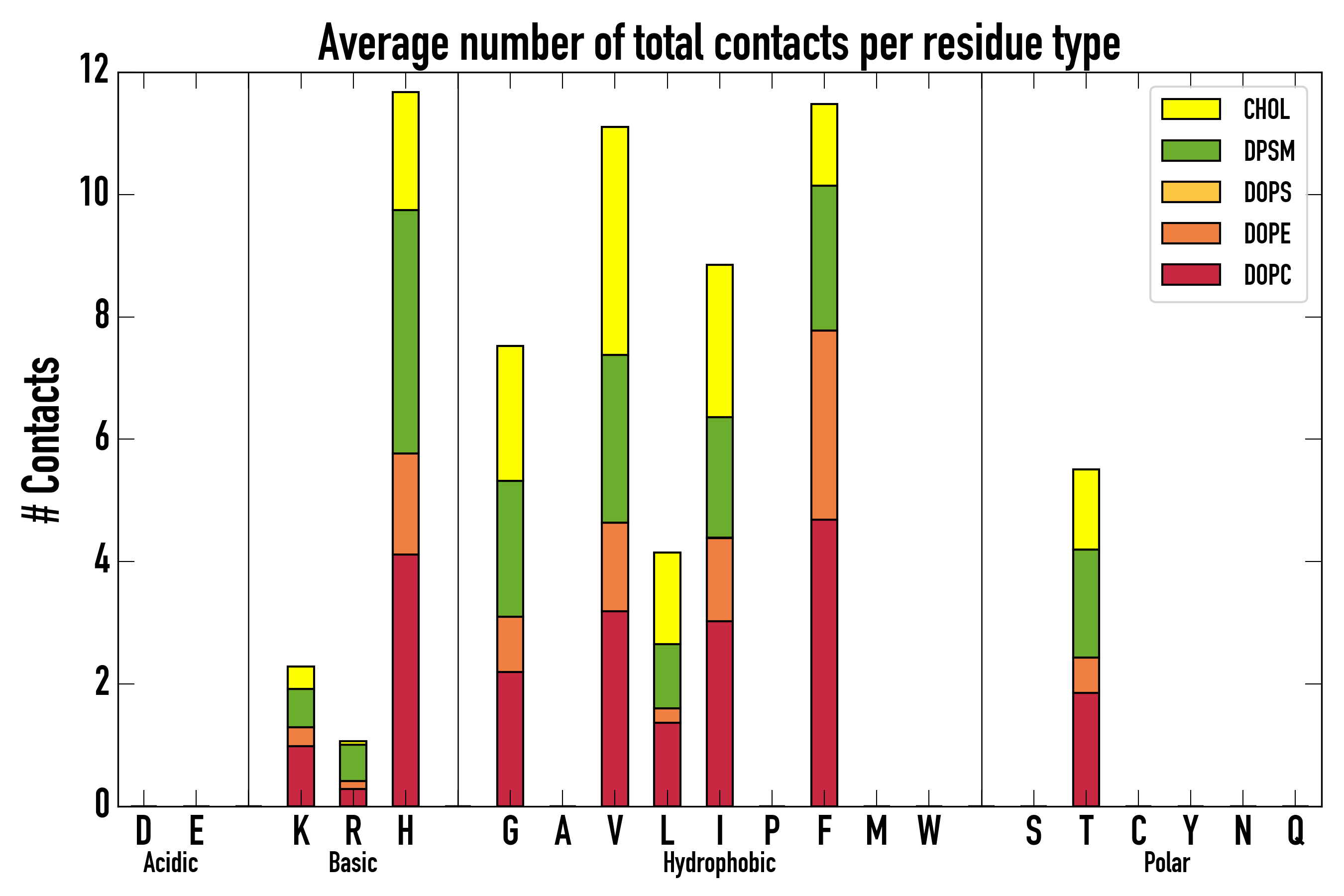 Number of total contacts per residue type: