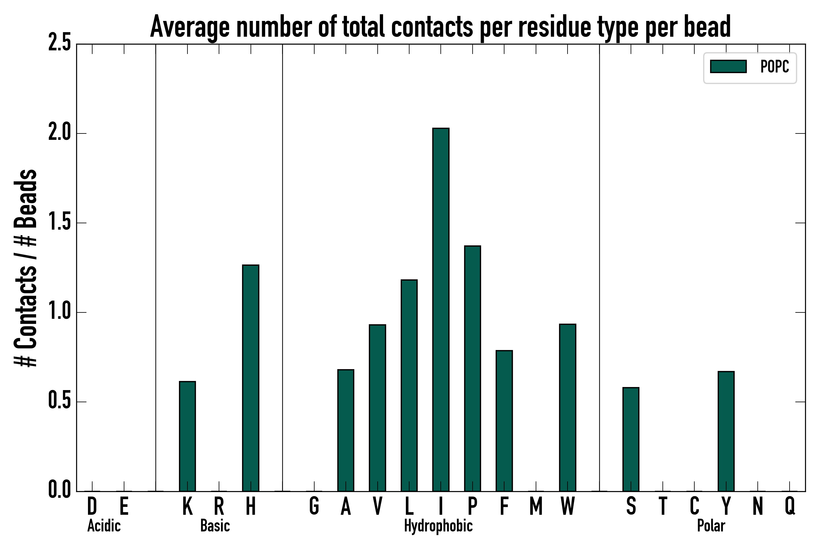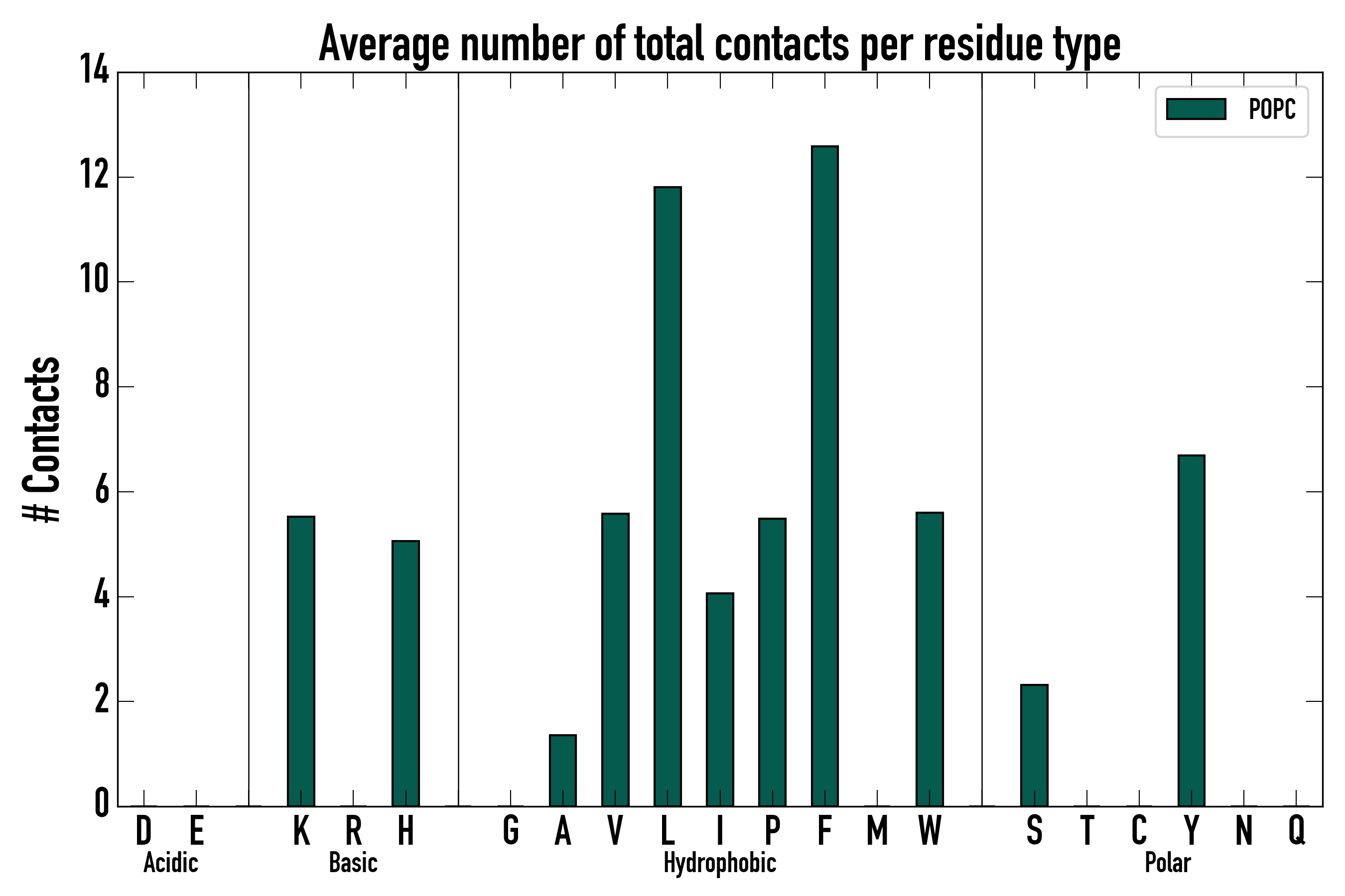 Number of total contacts per residue type: