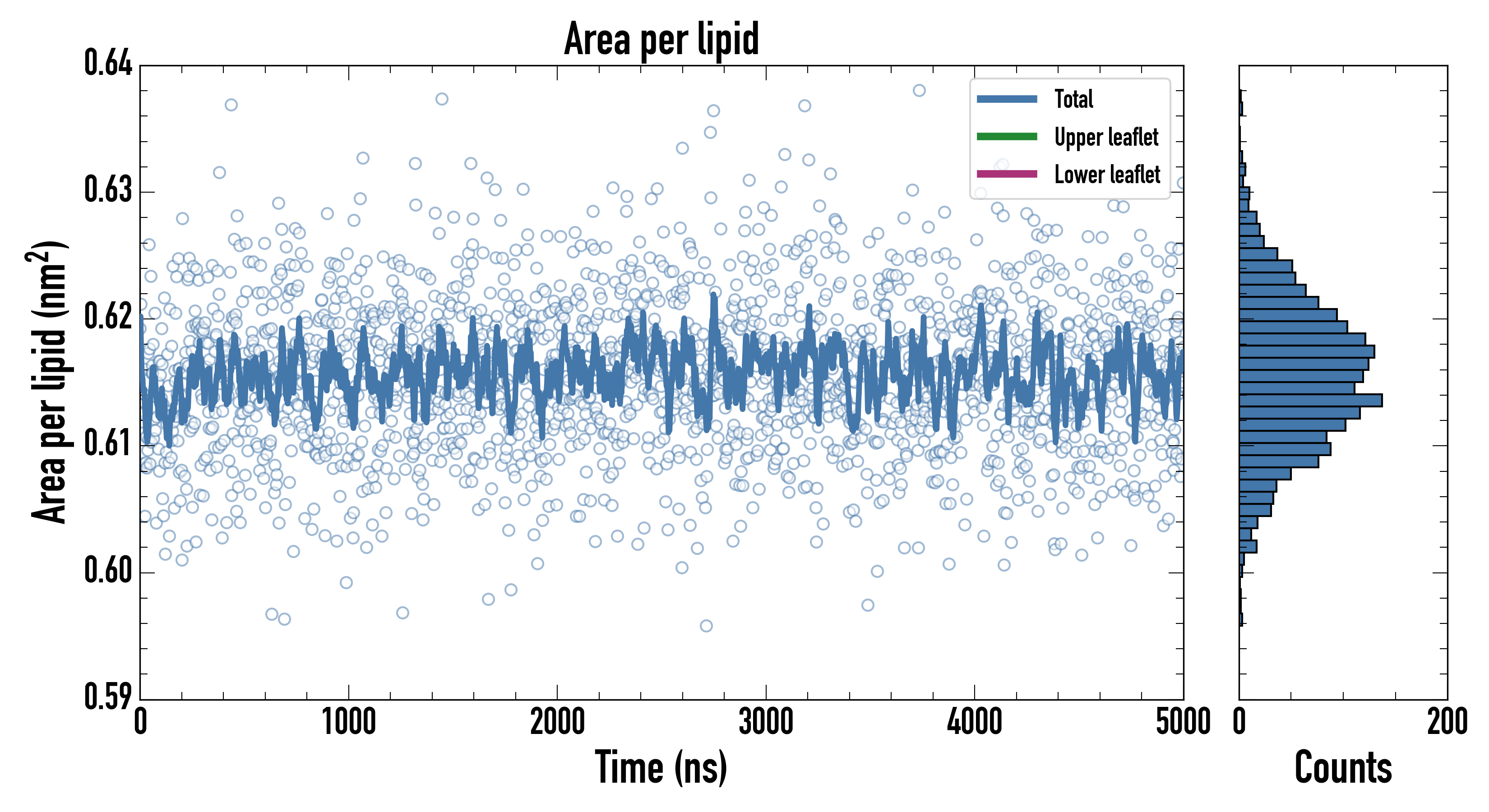 Lower leaflet (nm2): 0.61558200 ± 0.00105122