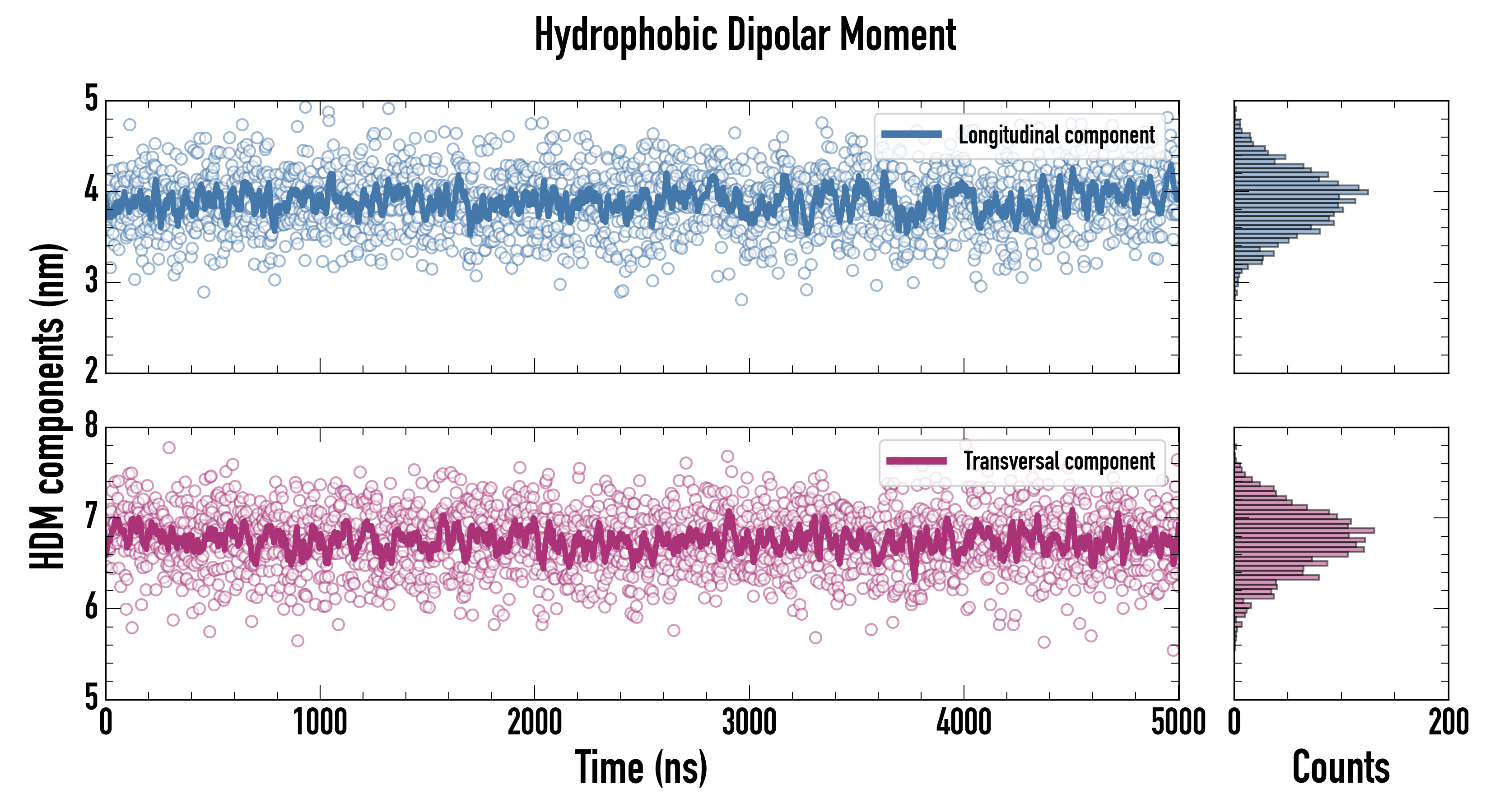 Longitudinal (e nm): 2.85 Transversal (e nm): 1.68 Hydrophobic Dipolar Moment (nm): 8.07