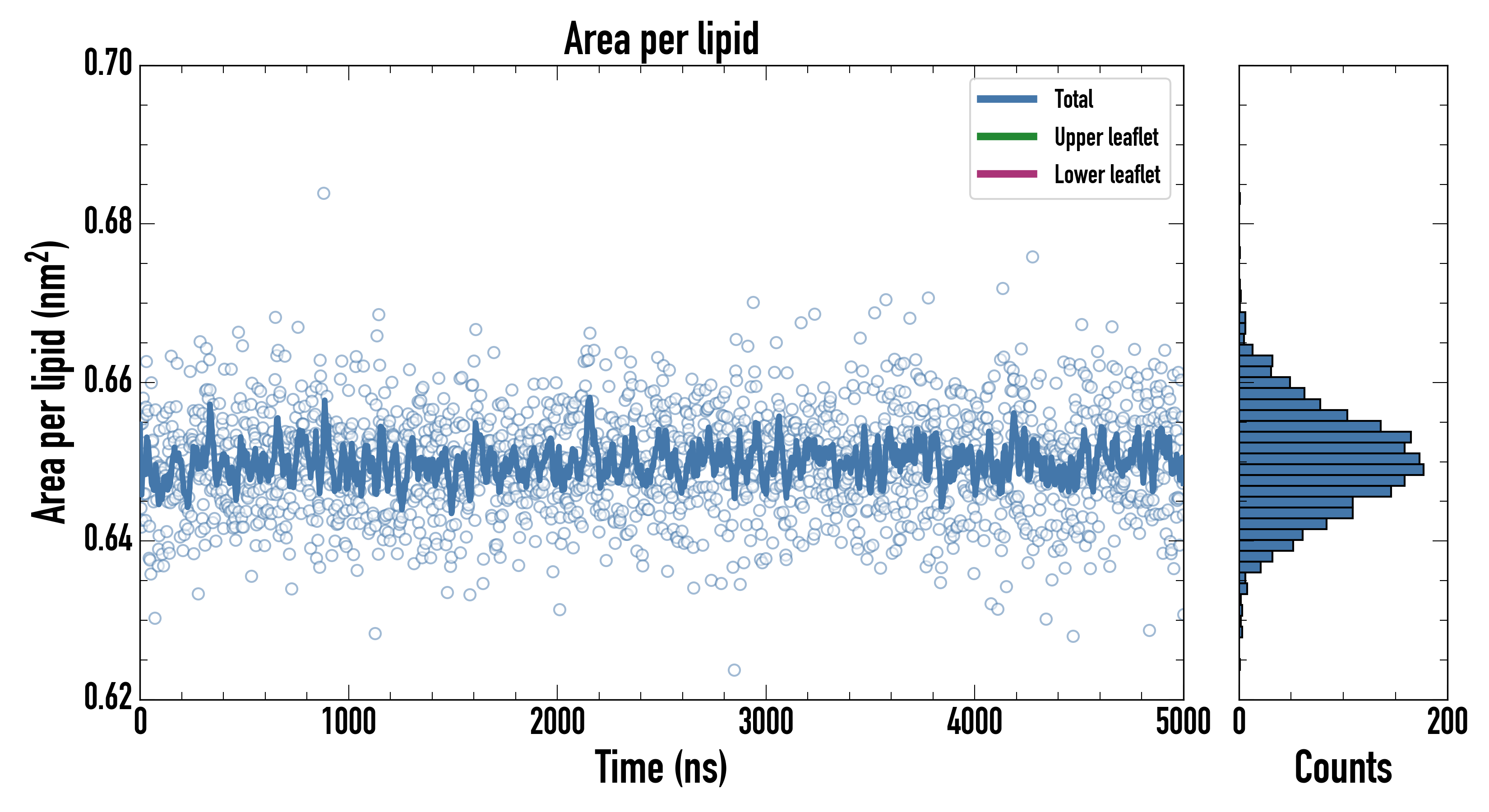 Upper leaflet (nm2): 0.65018600 ± 0.00119908