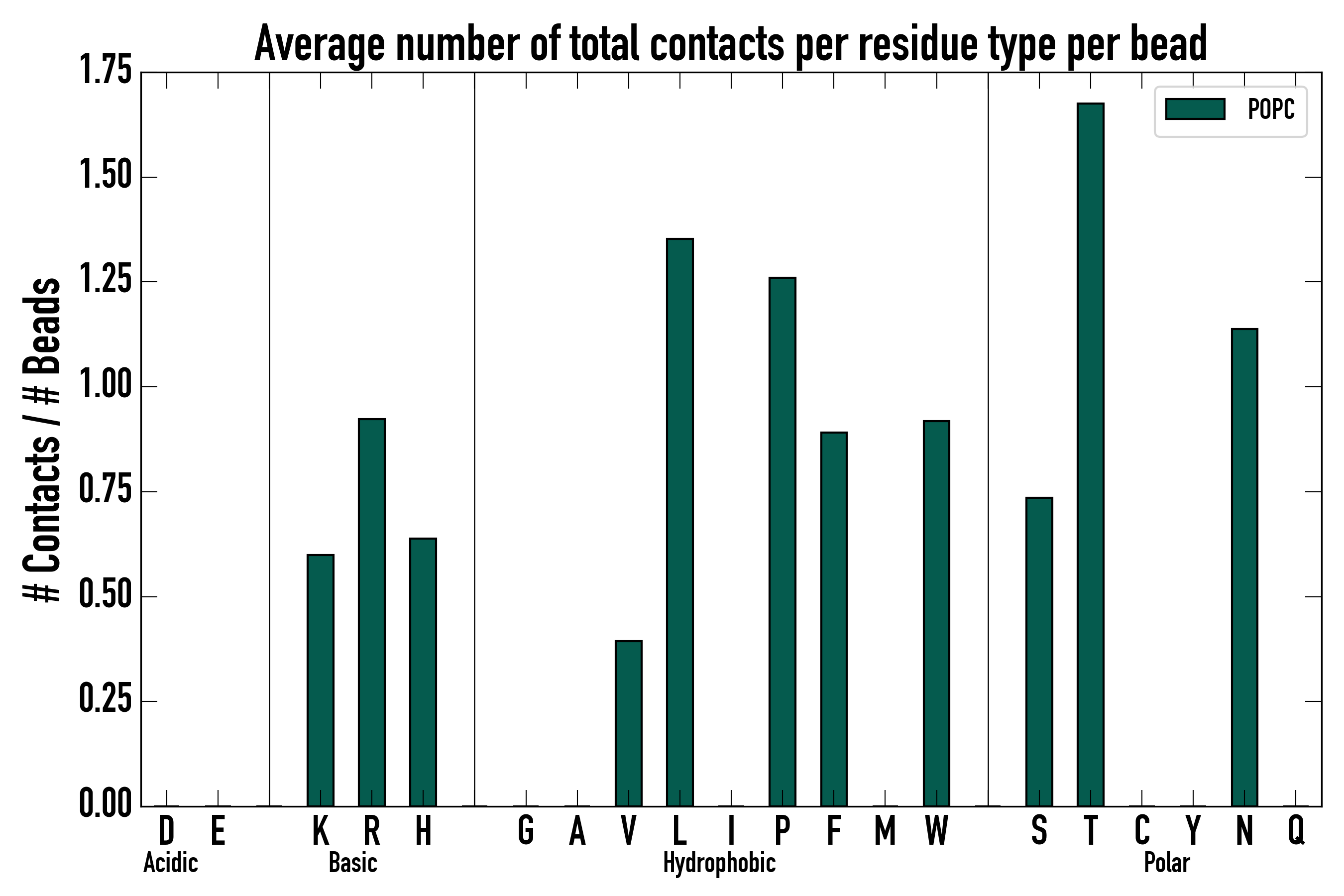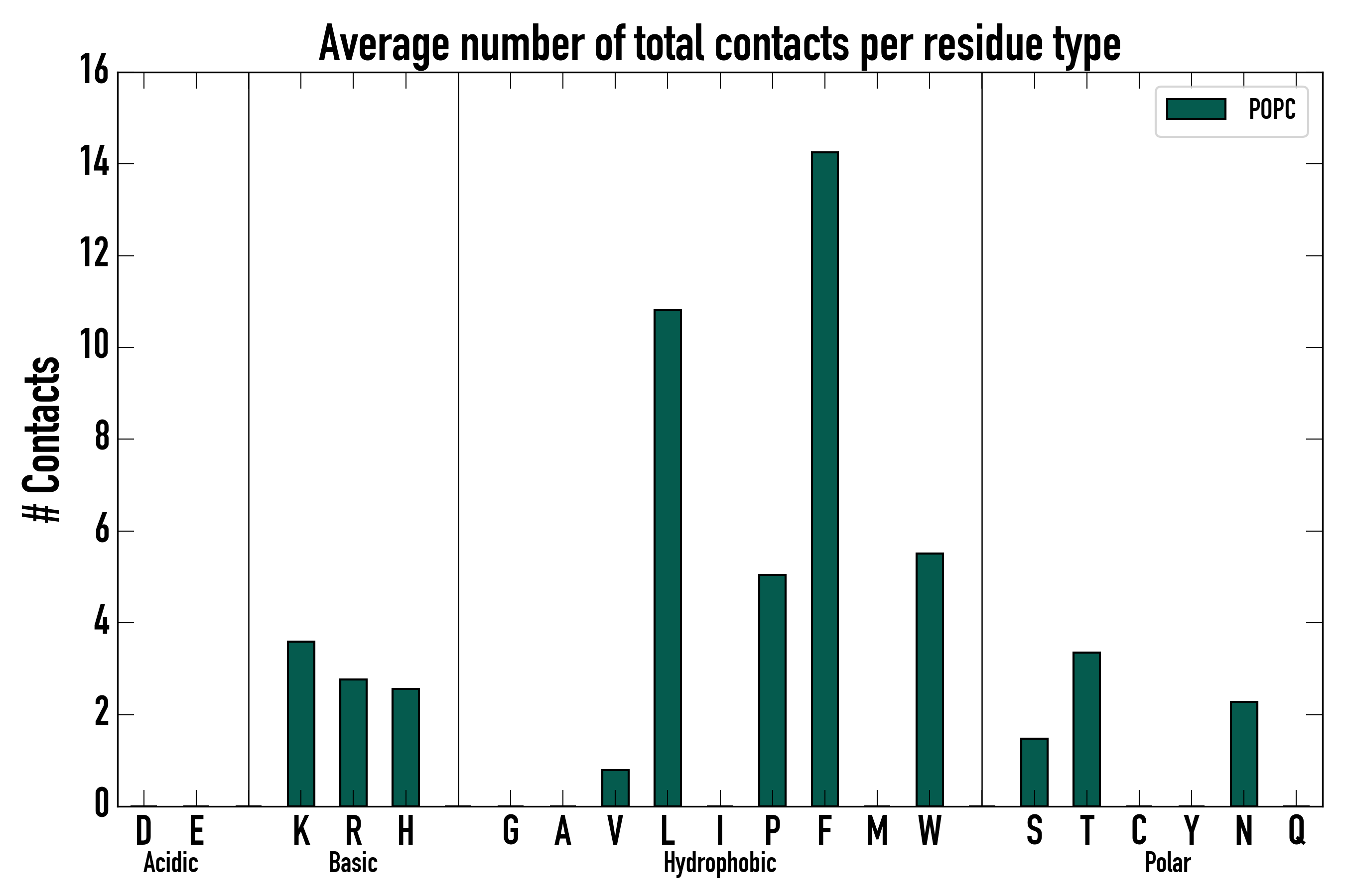 Number of total contacts per residue type: