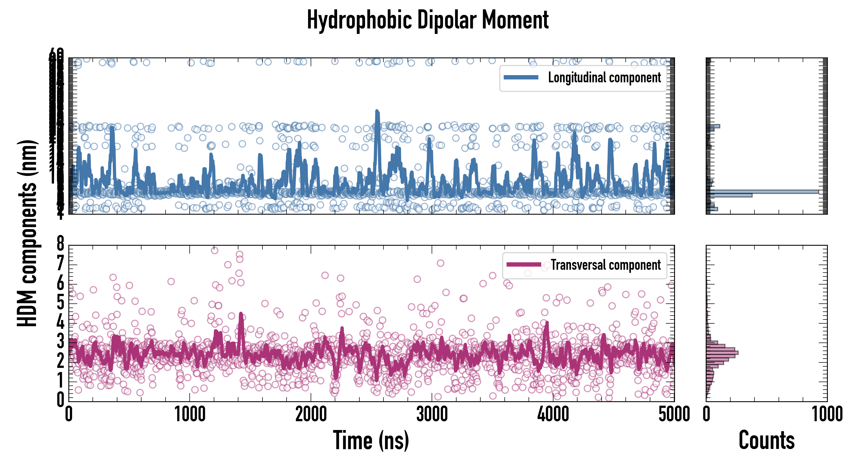 Longitudinal (e nm): 22.73 Transversal (e nm): 3.62 Hydrophobic Dipolar Moment (nm): 7.21