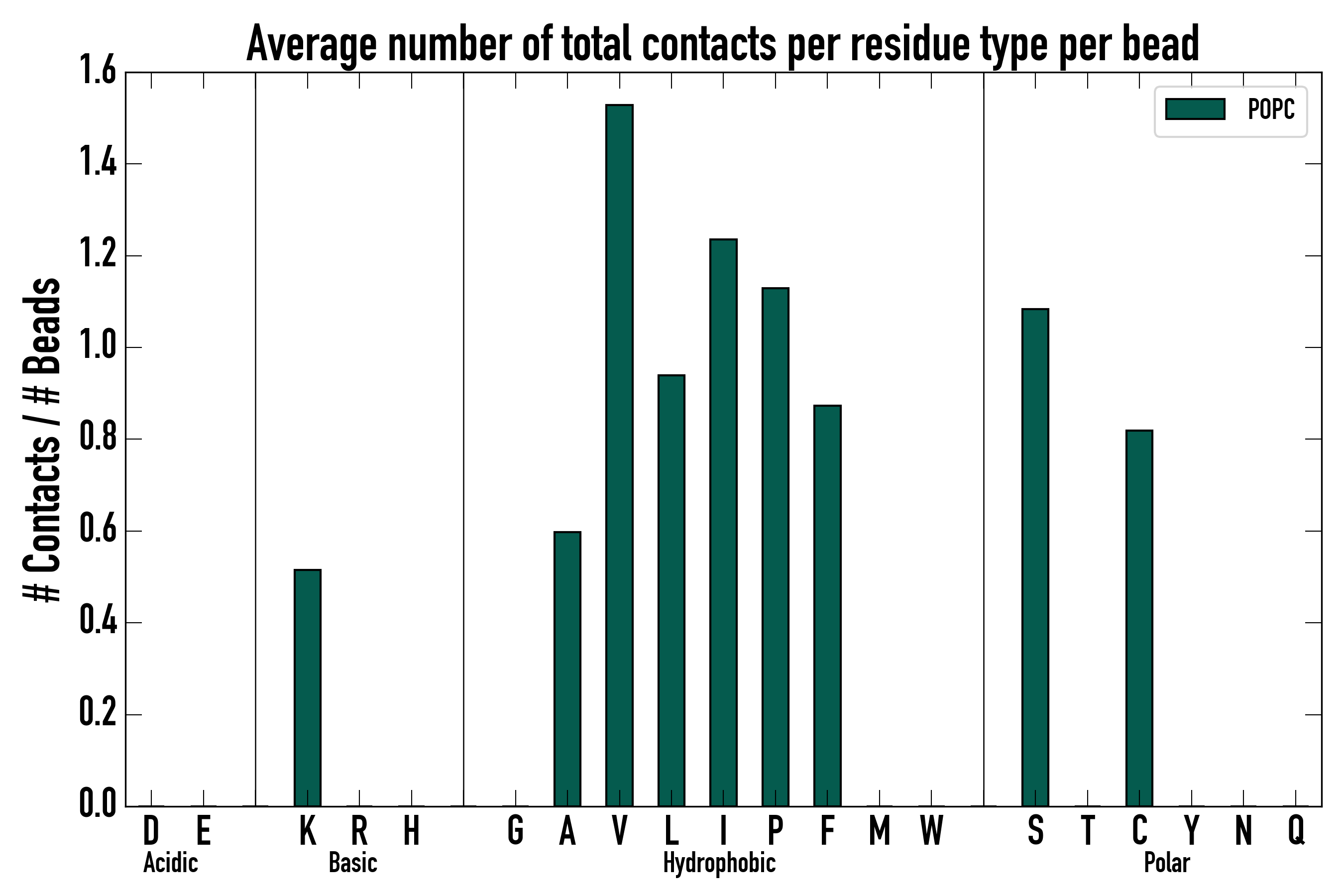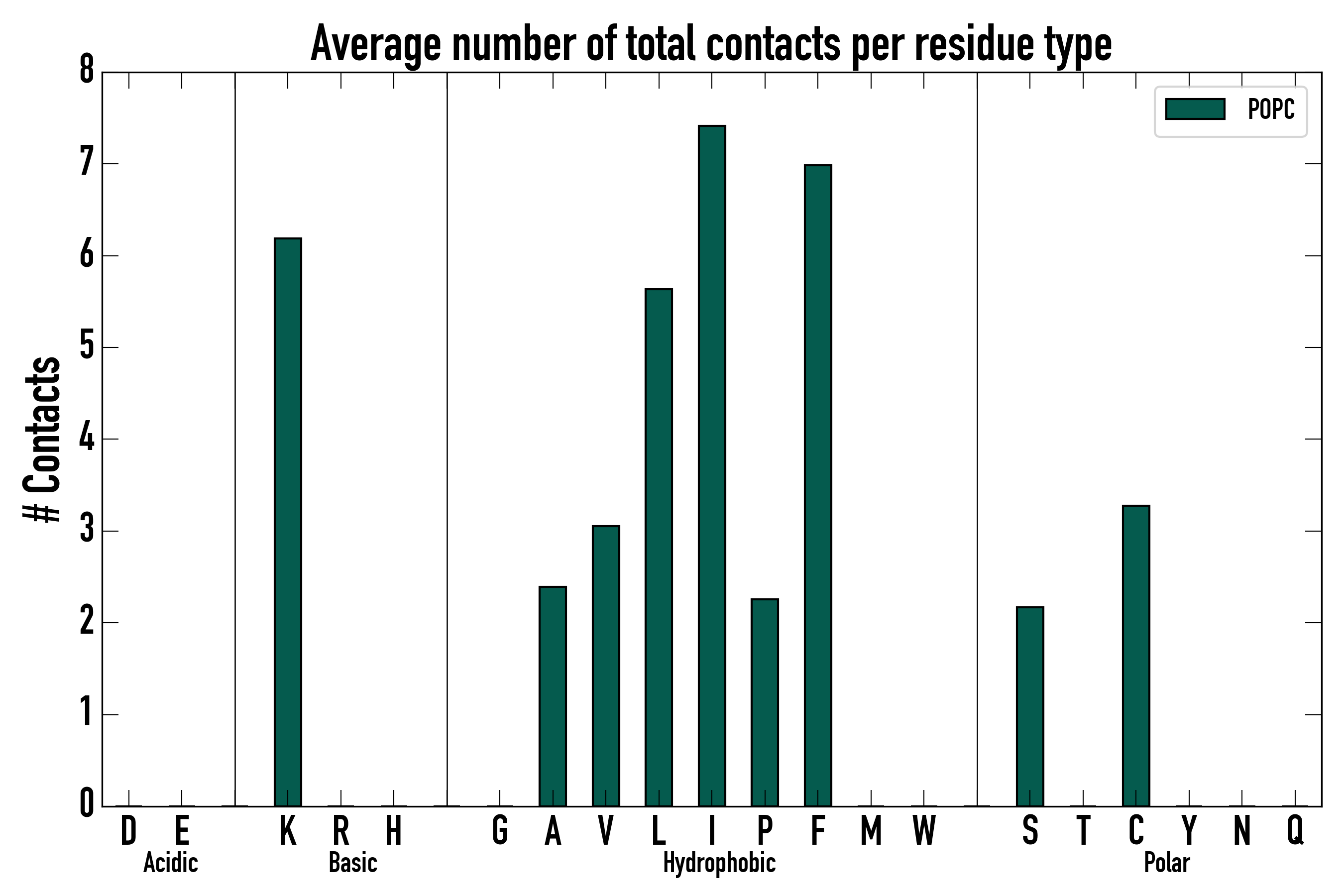 Number of total contacts per residue type: