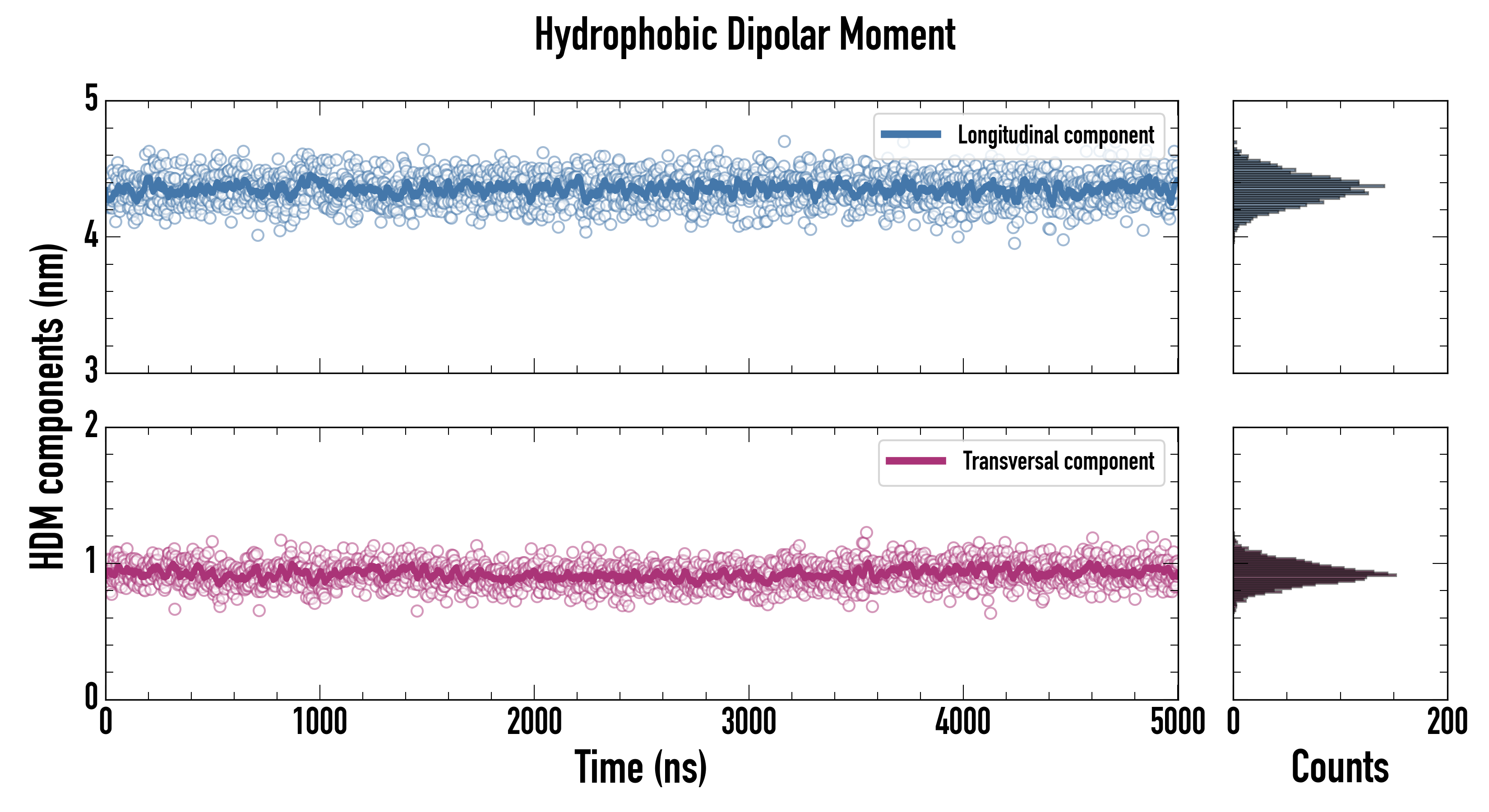 Longitudinal (e nm): 1.91 Transversal (e nm): 1.08 Hydrophobic Dipolar Moment (nm): 4.64