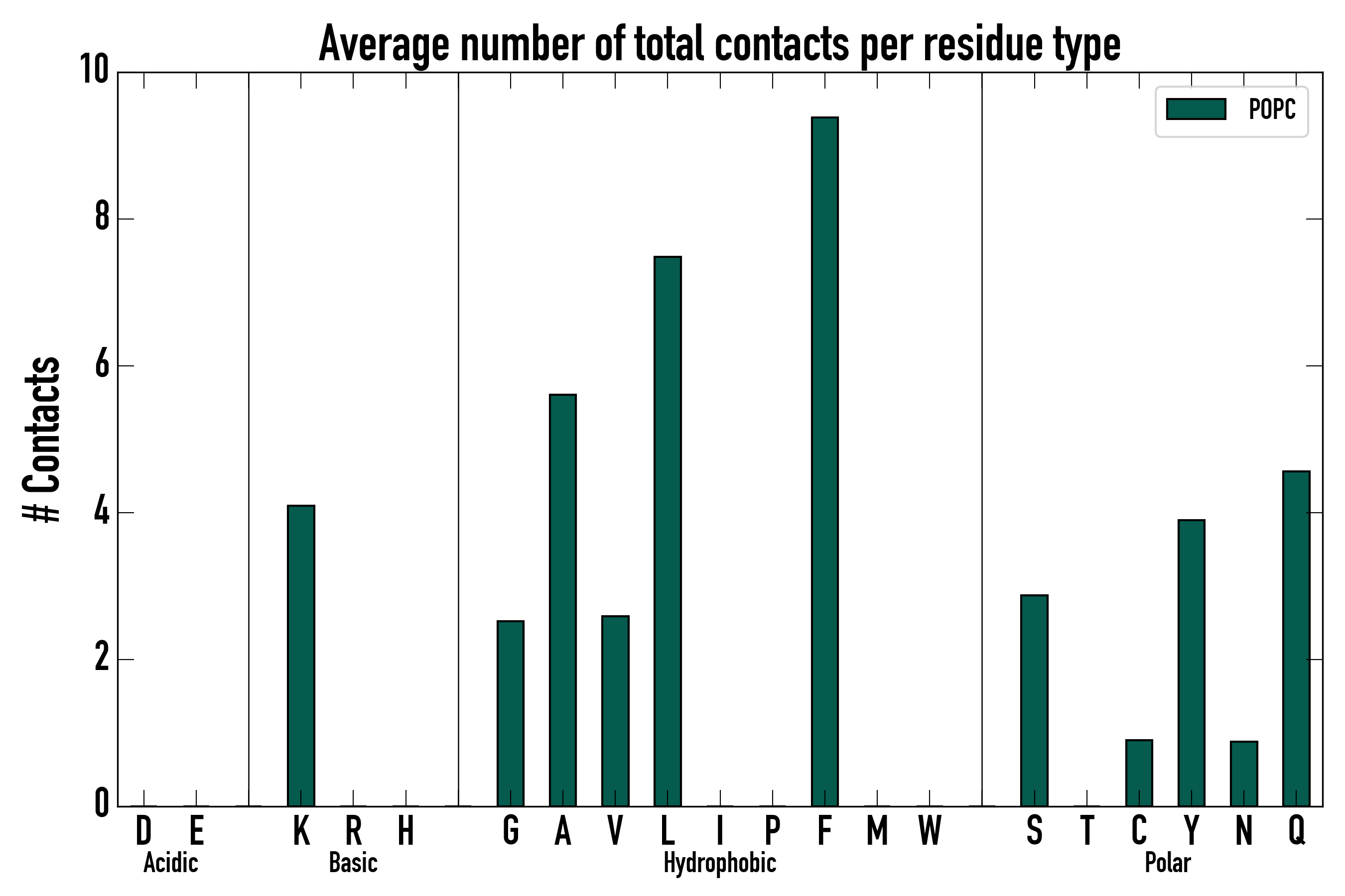 Number of total contacts per residue type: