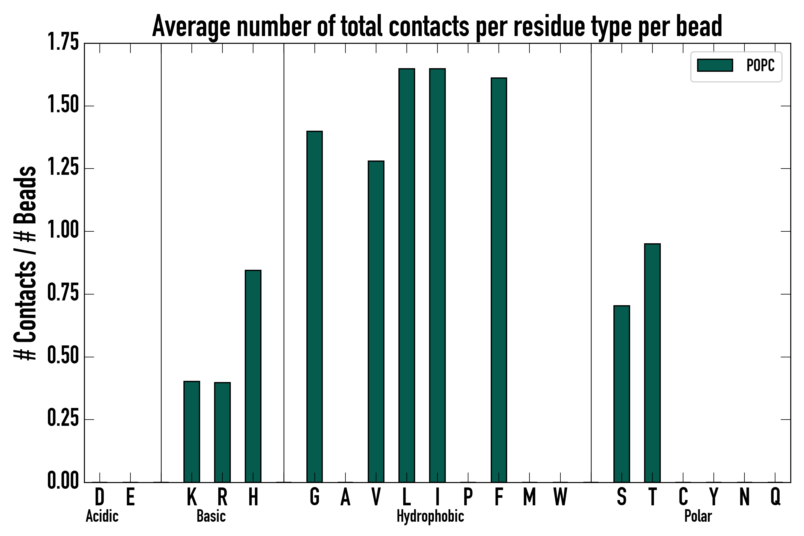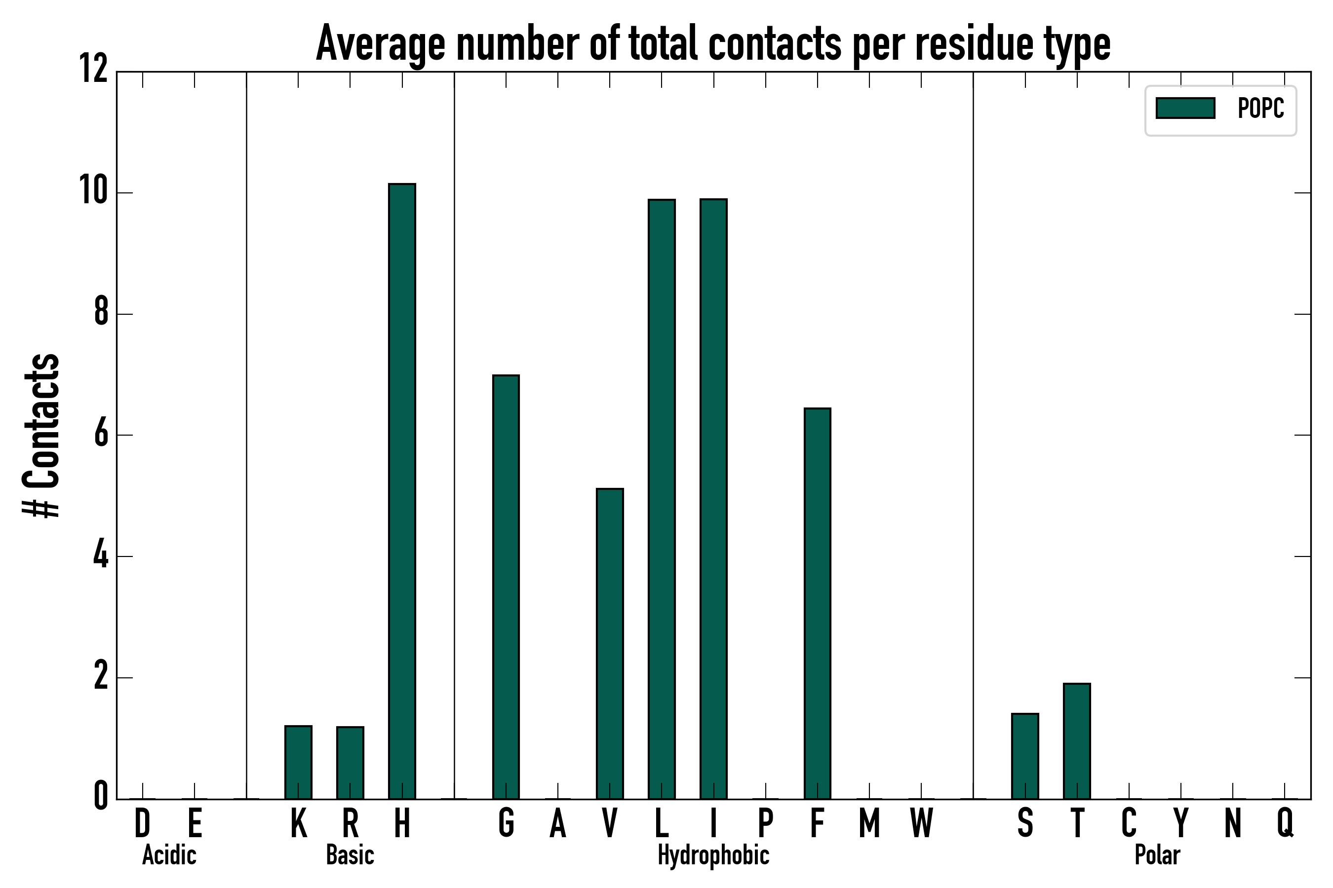 Number of total contacts per residue type: