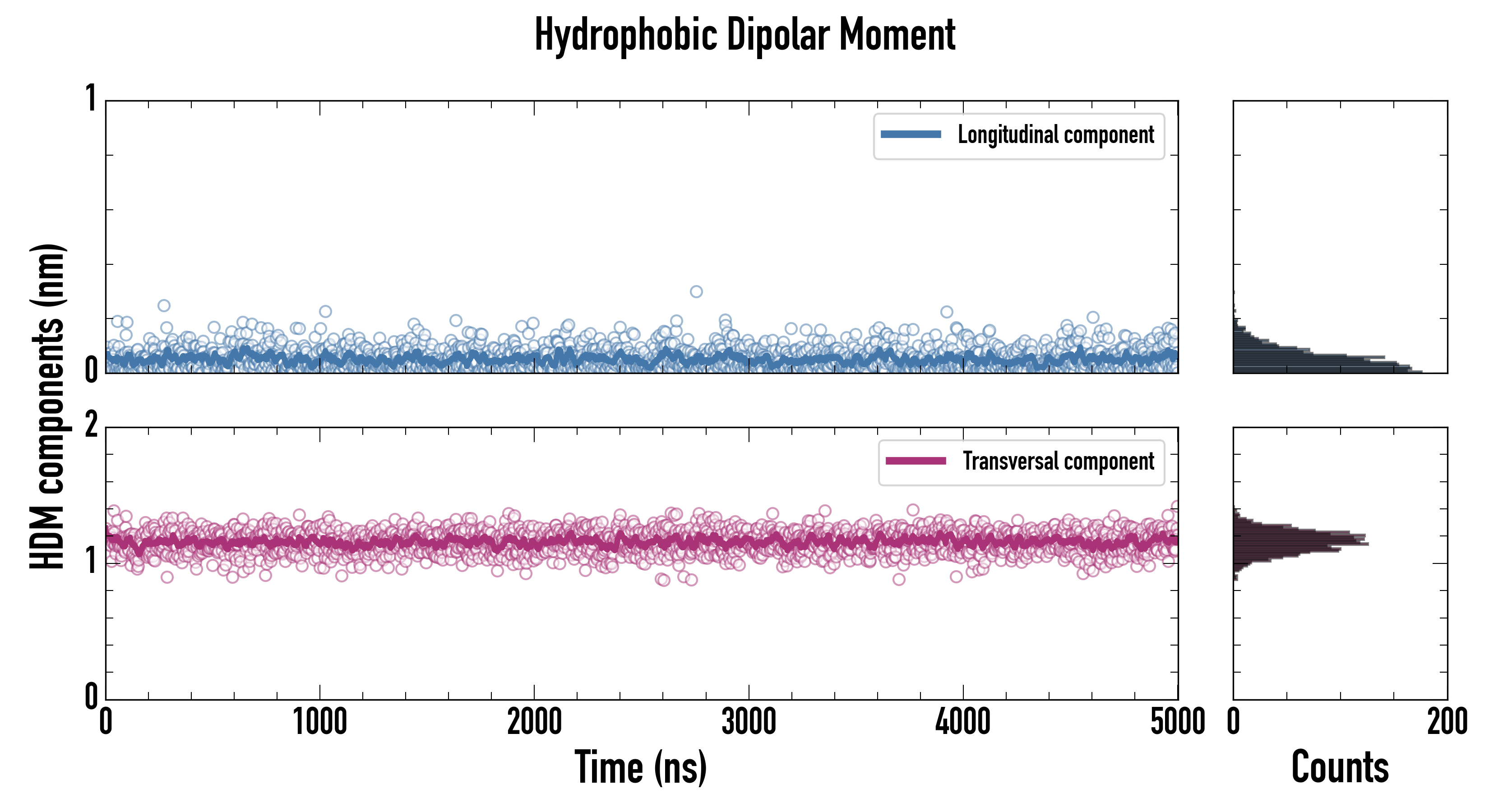 Longitudinal (e nm): 1.86 Transversal (e nm): 0.7 Hydrophobic Dipolar Moment (nm): 1.19