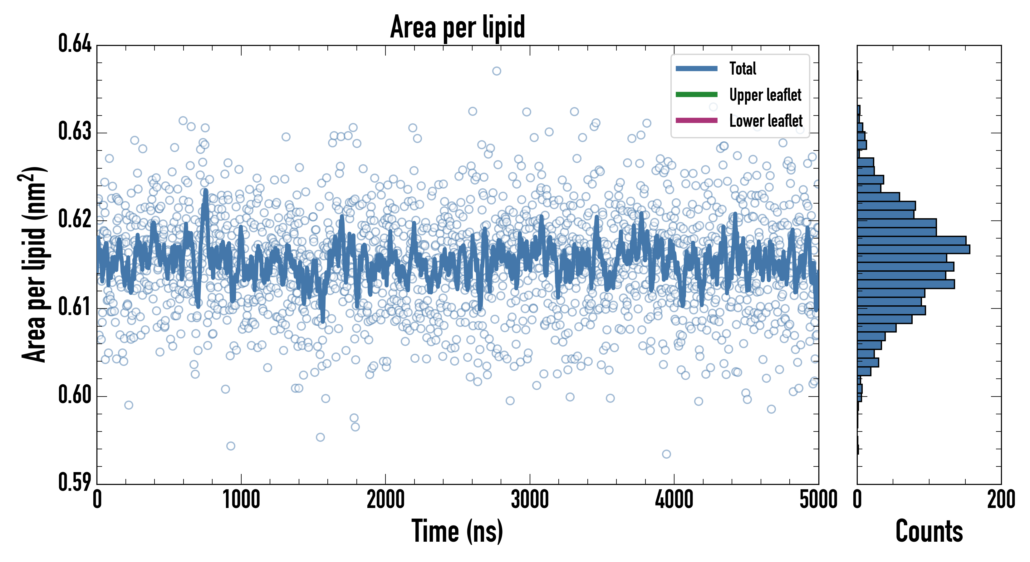 Upper leaflet (nm2): 0.615032000 ± 0.000936516