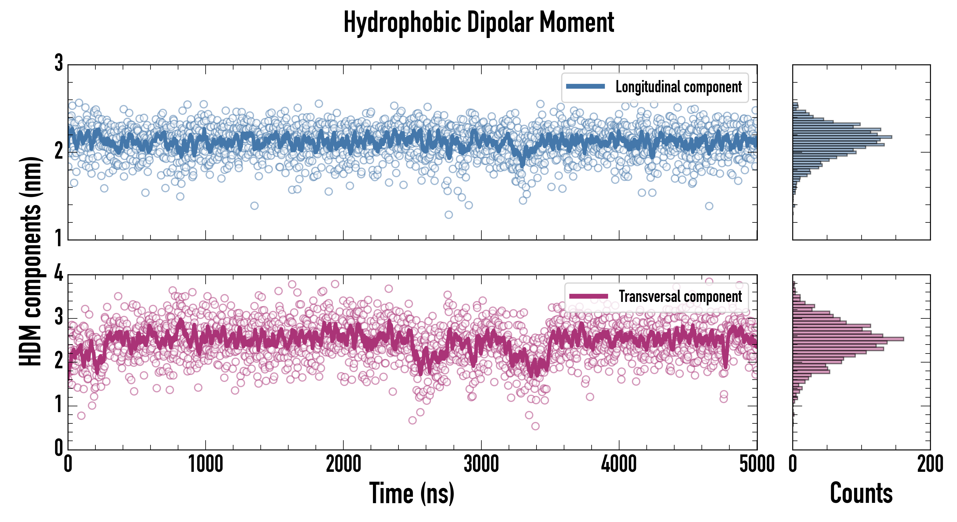Longitudinal (e nm): 5.53 Transversal (e nm): 1.48 Hydrophobic Dipolar Moment (nm): 2.37