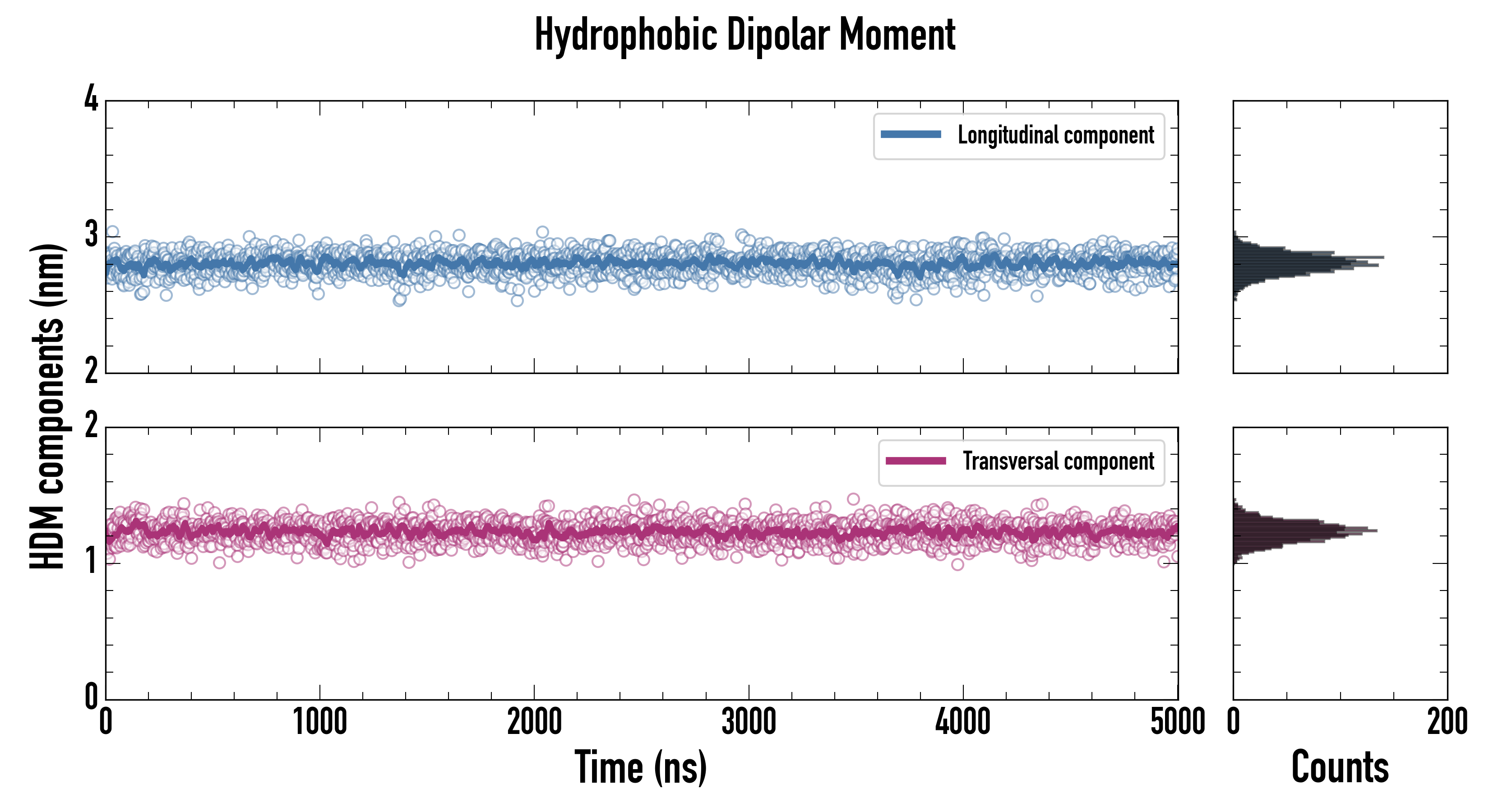 Longitudinal (e nm): 2.75 Transversal (e nm): 0.92 Hydrophobic Dipolar Moment (nm): 3.14