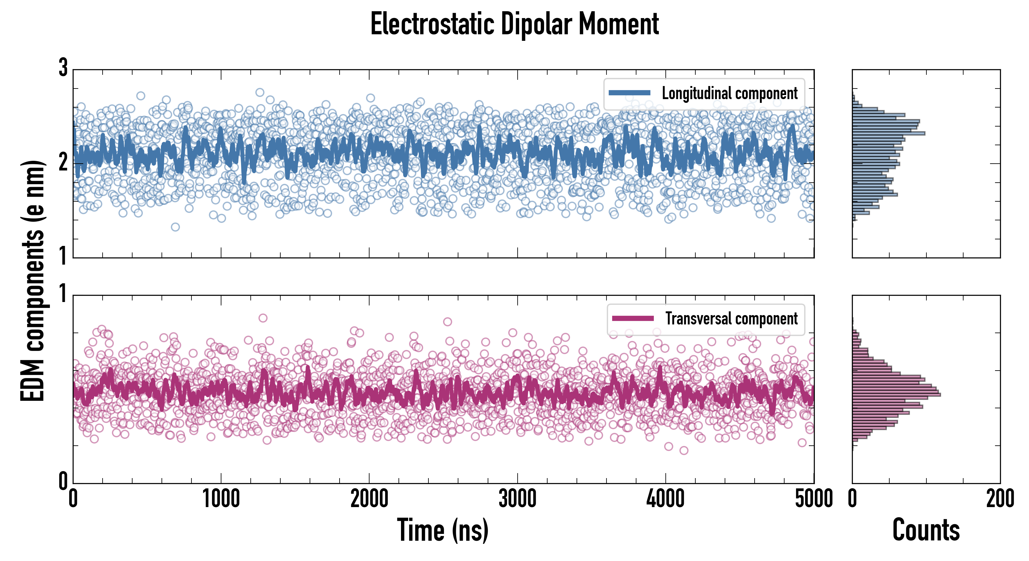 Longitudinal (e nm): 2.49 Transversal (e nm): 0.66 Hydrophobic Dipolar Moment (nm): 0.96