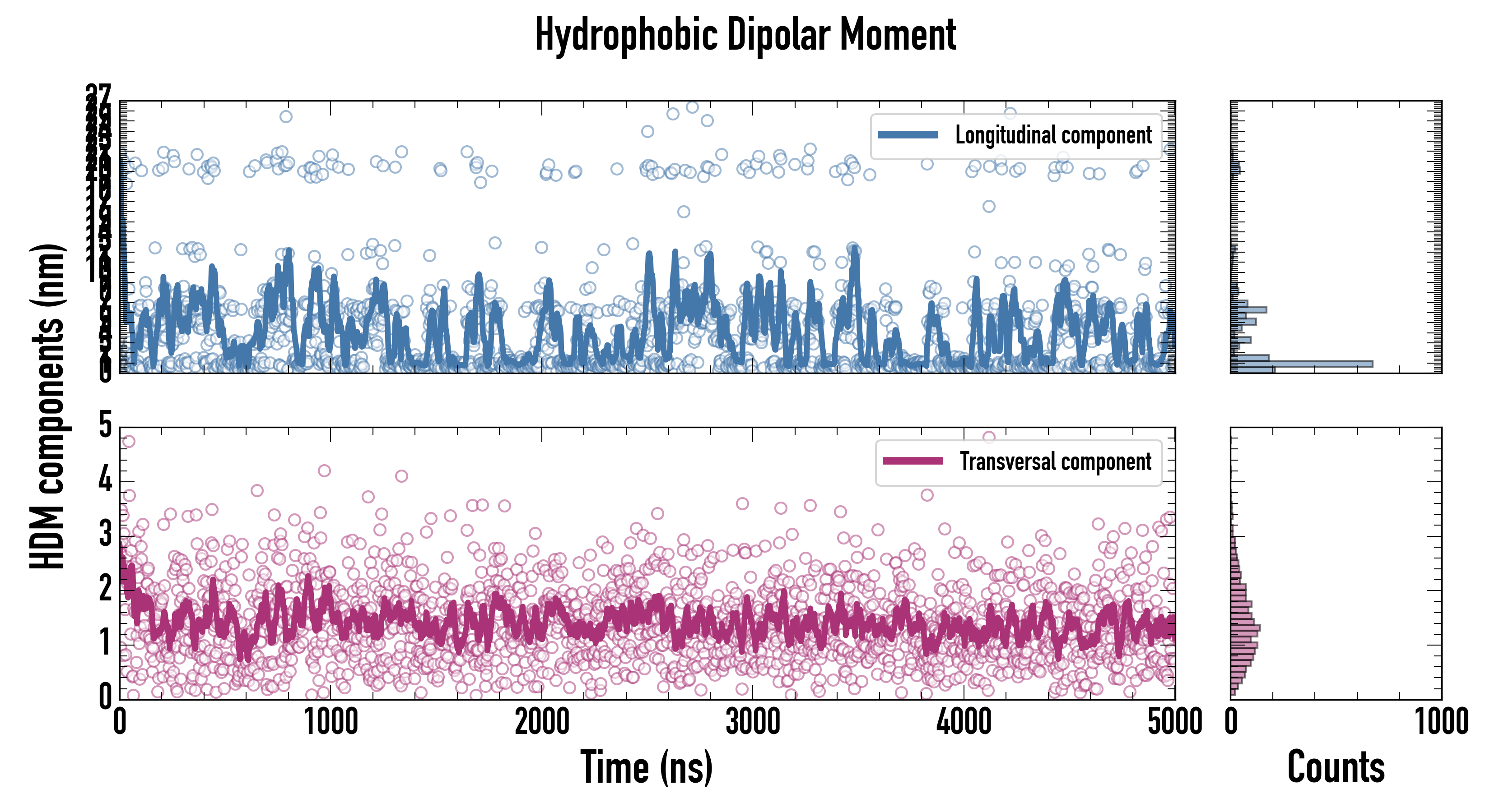 Longitudinal (e nm): 19.5 Transversal (e nm): 2.25 Hydrophobic Dipolar Moment (nm): 2.74