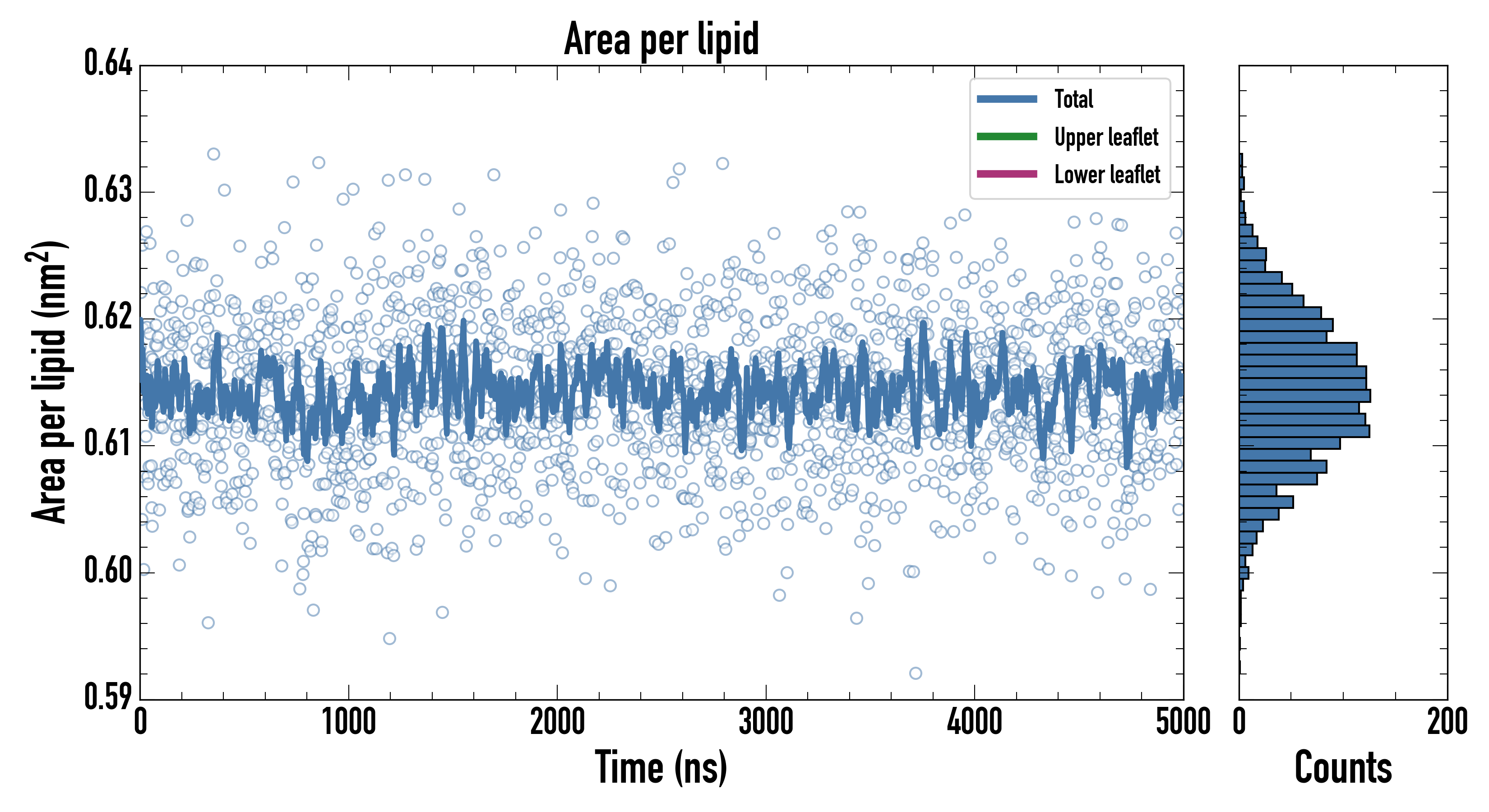 Upper leaflet (nm2): 0.614279000 ± 0.000976266