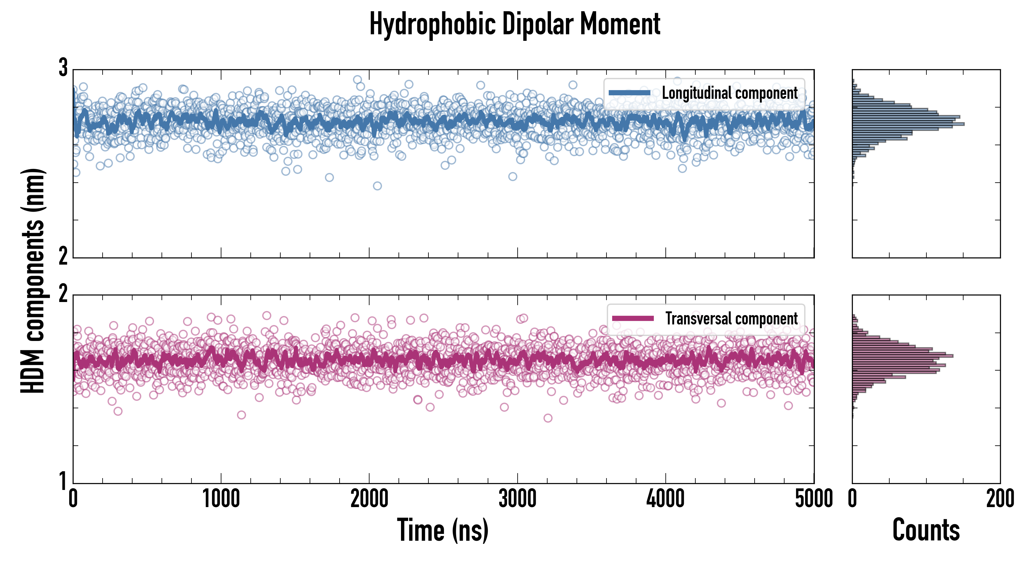 Longitudinal (e nm): 2.71 Transversal (e nm): 2.18 Hydrophobic Dipolar Moment (nm): 3.28