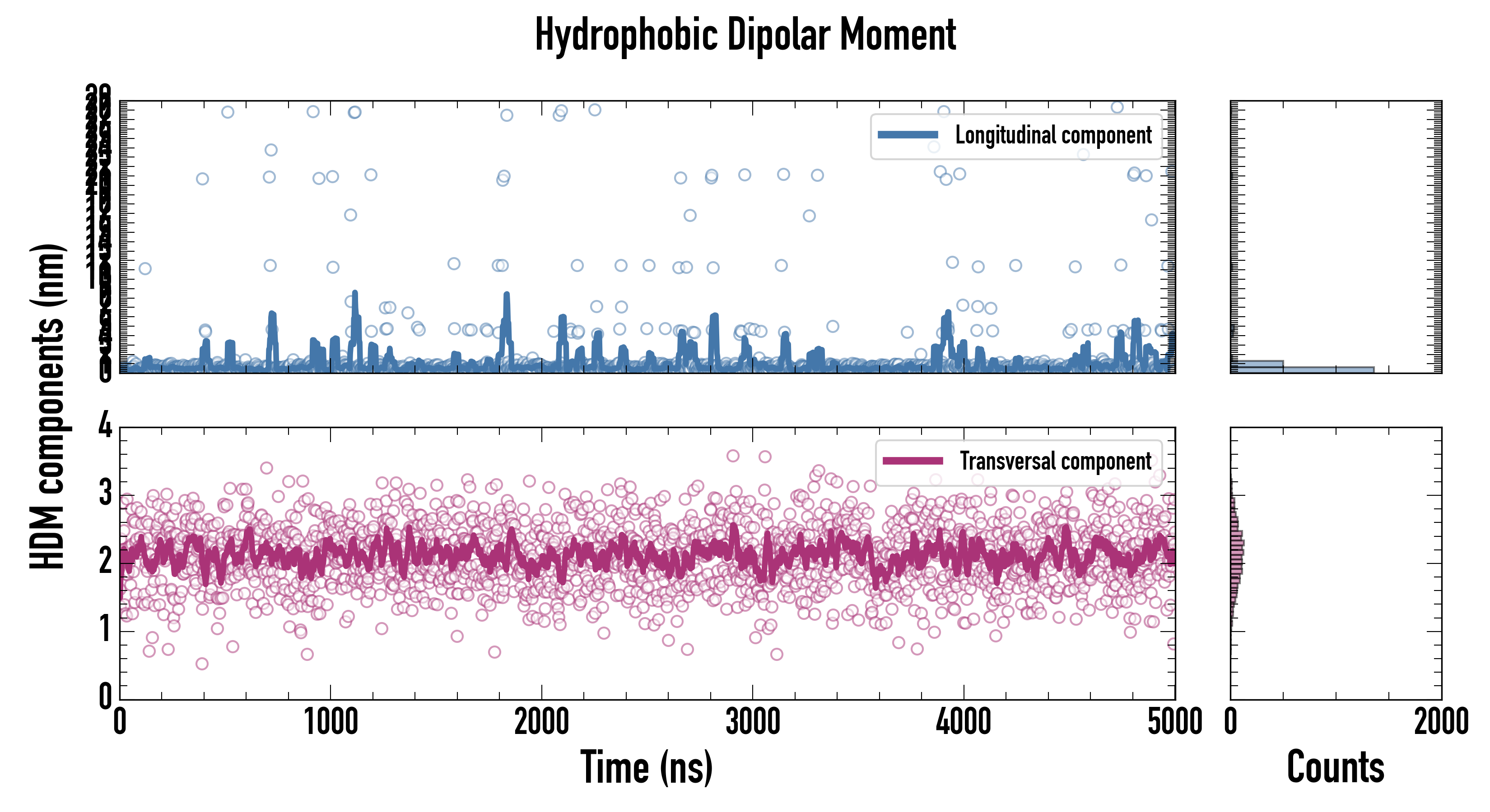 Longitudinal (e nm): 12.42 Transversal (e nm): 2.96 Hydrophobic Dipolar Moment (nm): 2.49