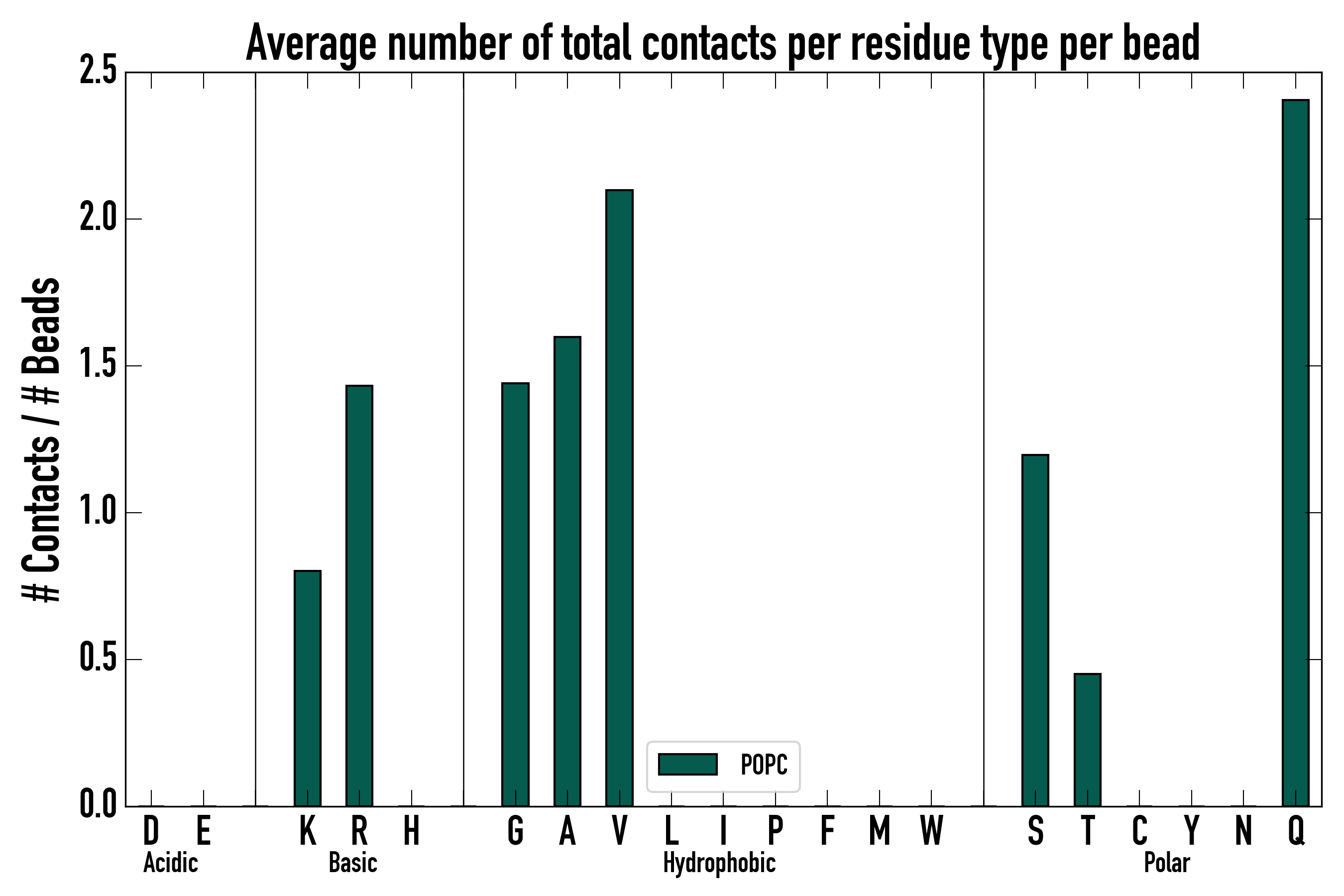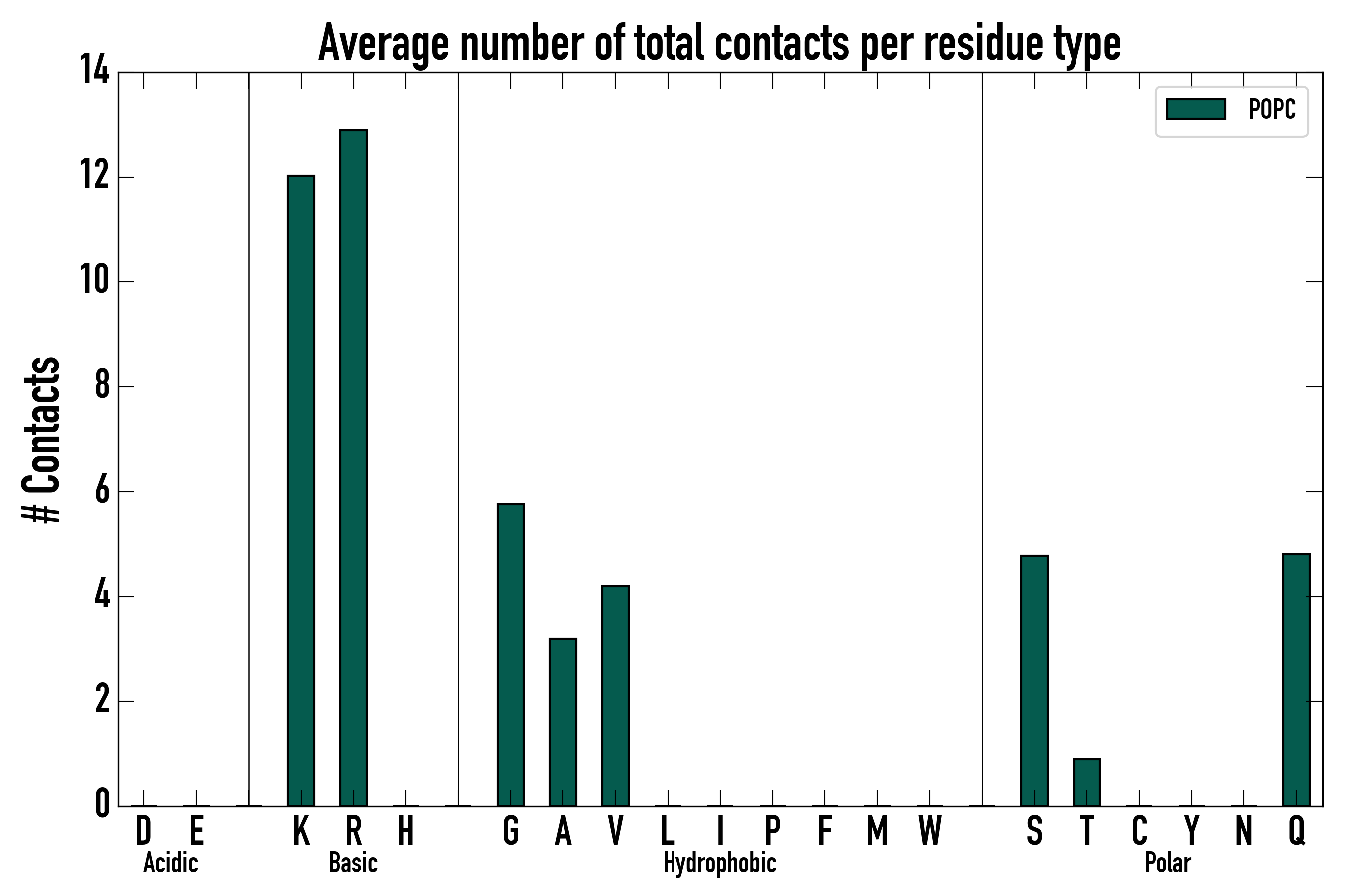 Number of total contacts per residue type: