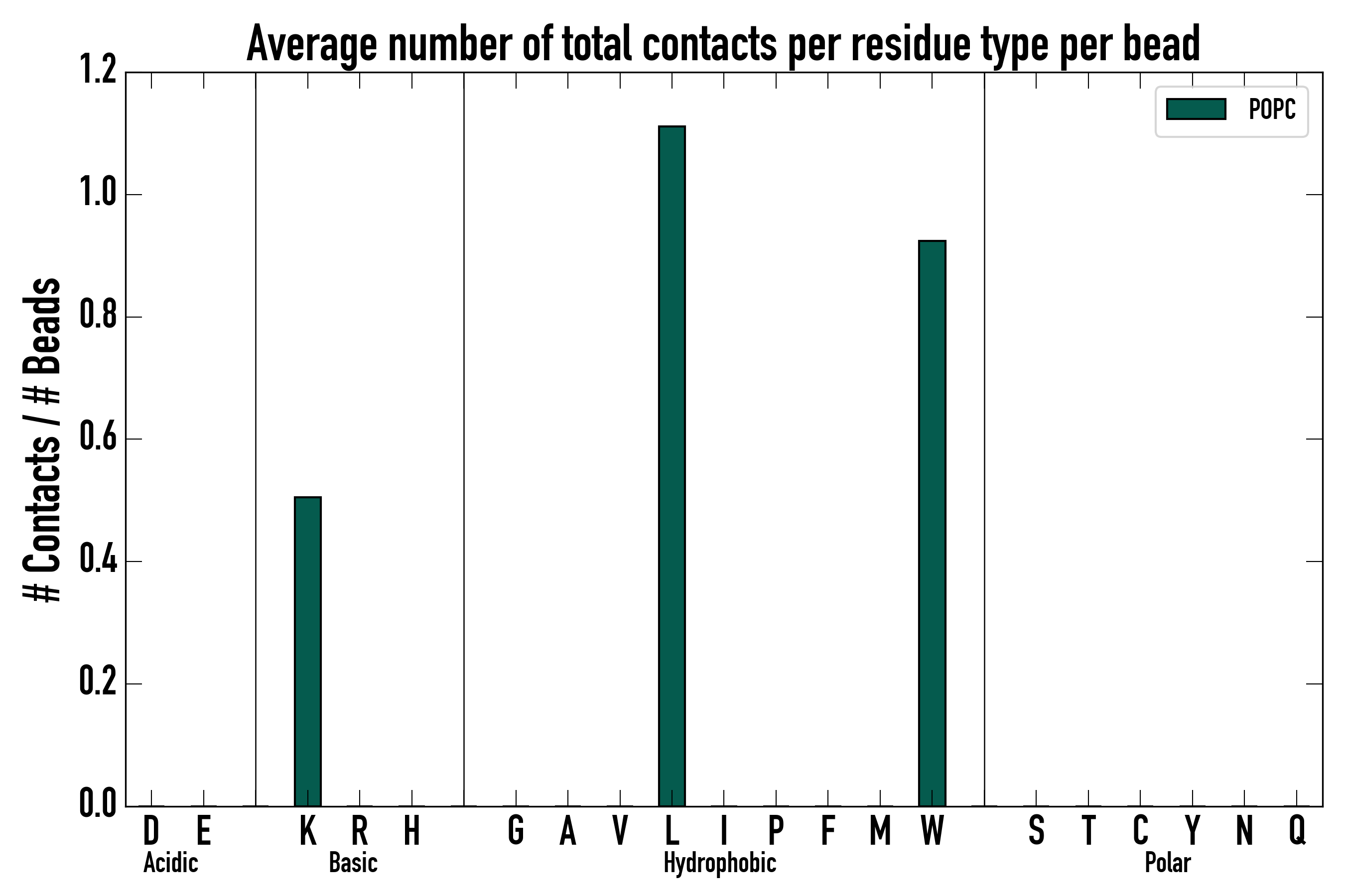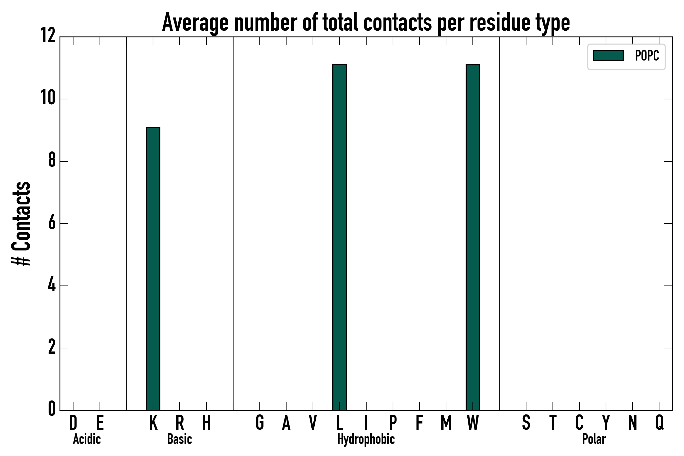 Number of total contacts per residue type: