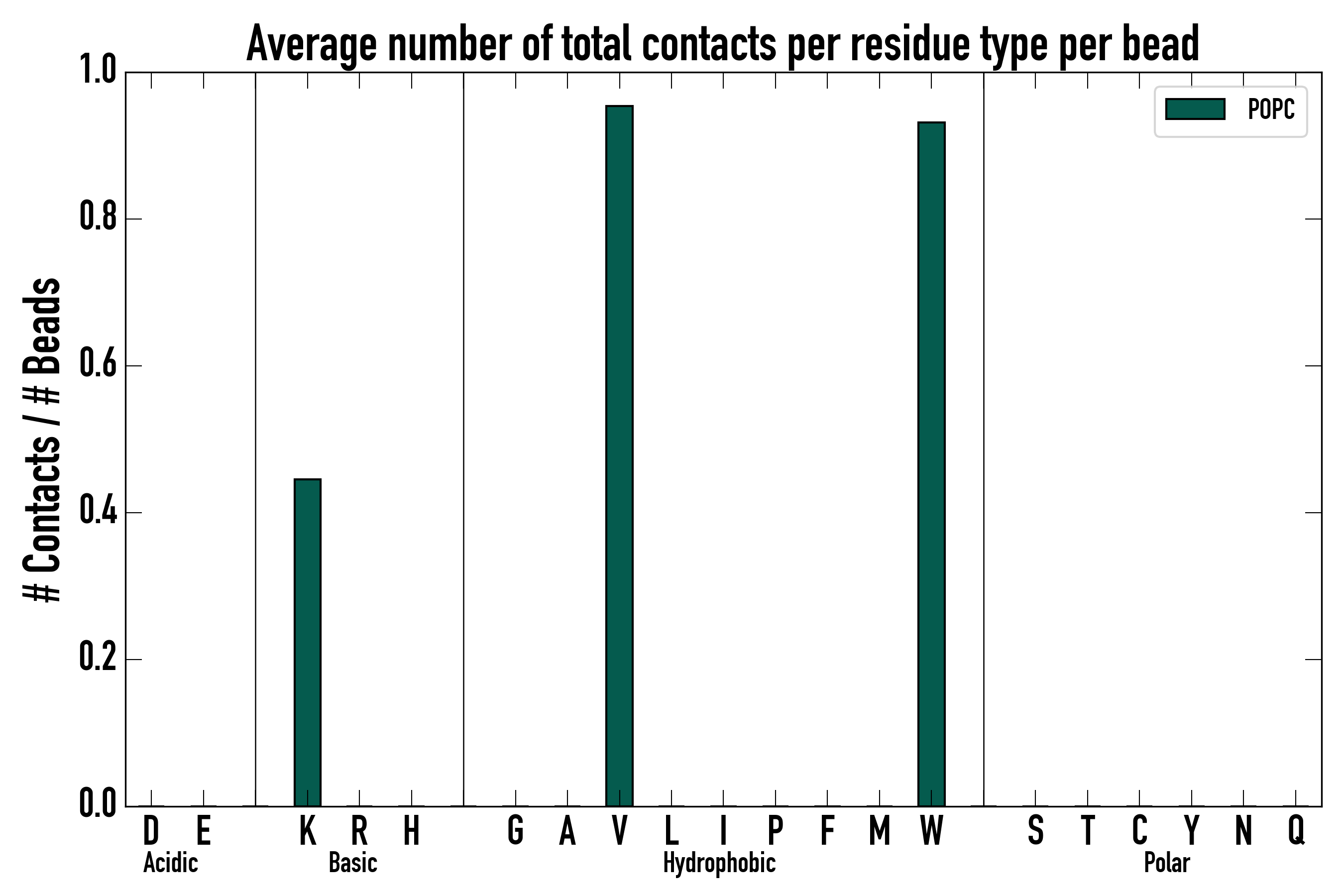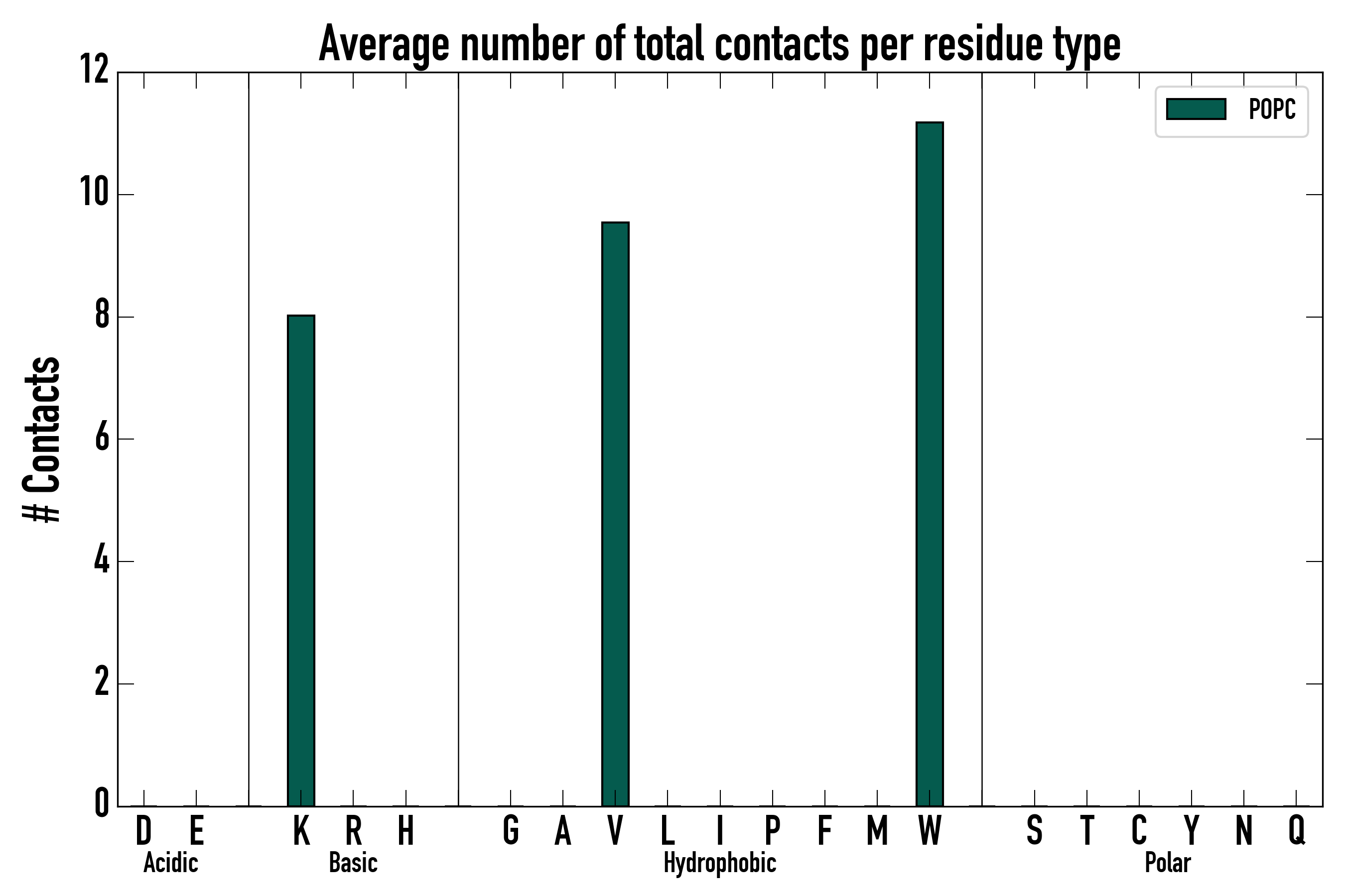 Number of total contacts per residue type: