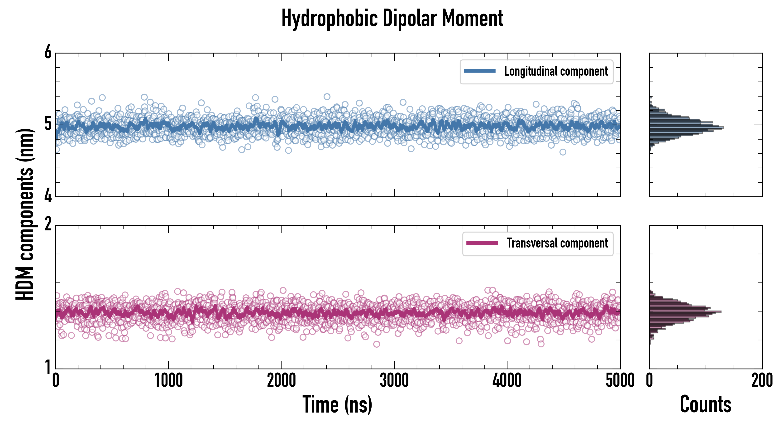 Longitudinal (e nm): 1.19 Transversal (e nm): 0.87 Hydrophobic Dipolar Moment (nm): 5.37