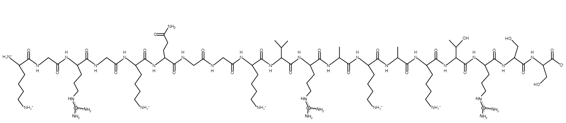 By amino acid: Basic: 8 Acidic: 0 Hydrophobic: 7 Polar: 4 Electrostatic Dipolar Moment (e nm): 6.43