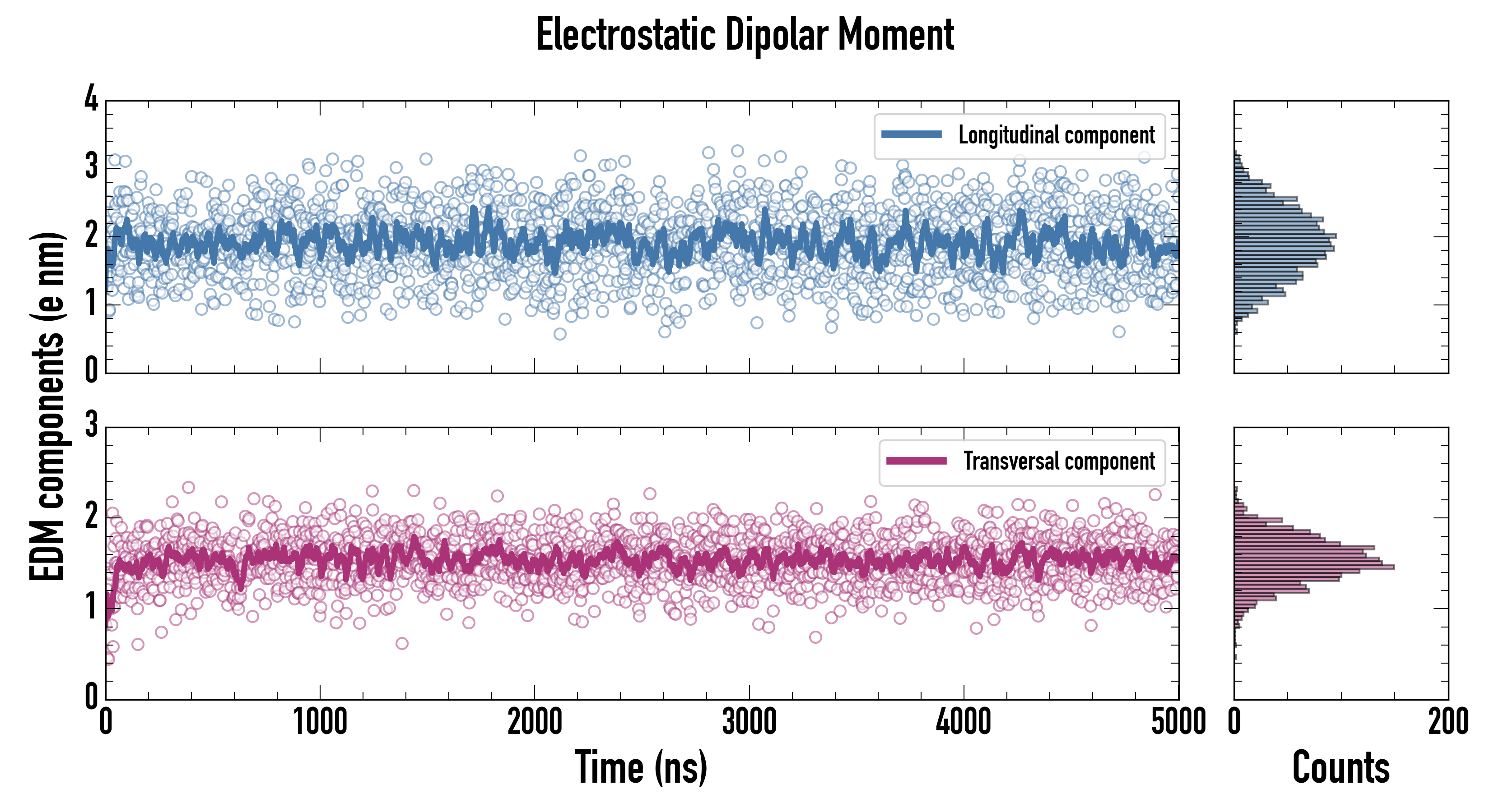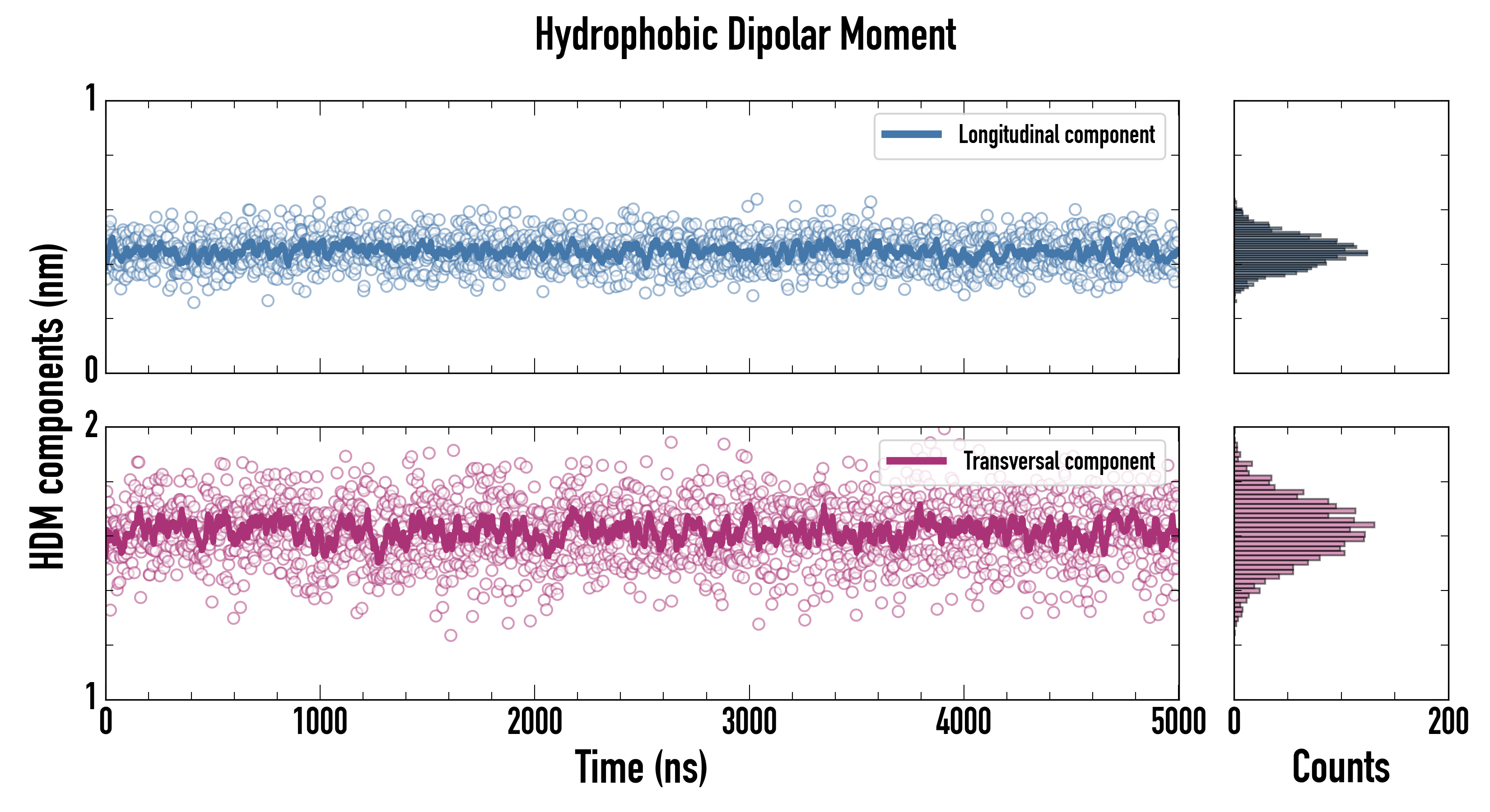 Longitudinal (e nm): 2.96 Transversal (e nm): 1.55 Hydrophobic Dipolar Moment (nm): 1.5