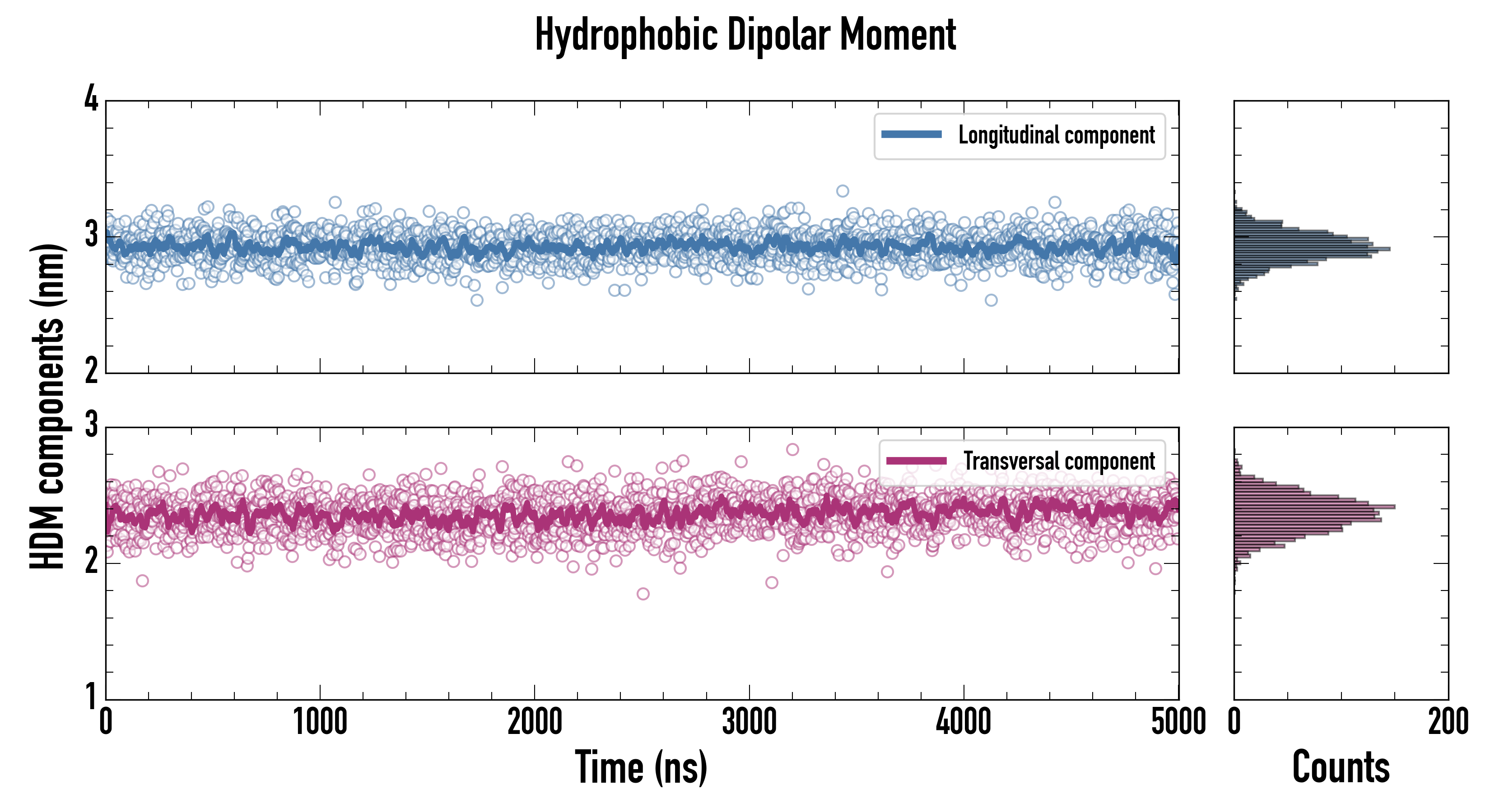 Longitudinal (e nm): 7.96 Transversal (e nm): 0.79 Hydrophobic Dipolar Moment (nm): 3.59