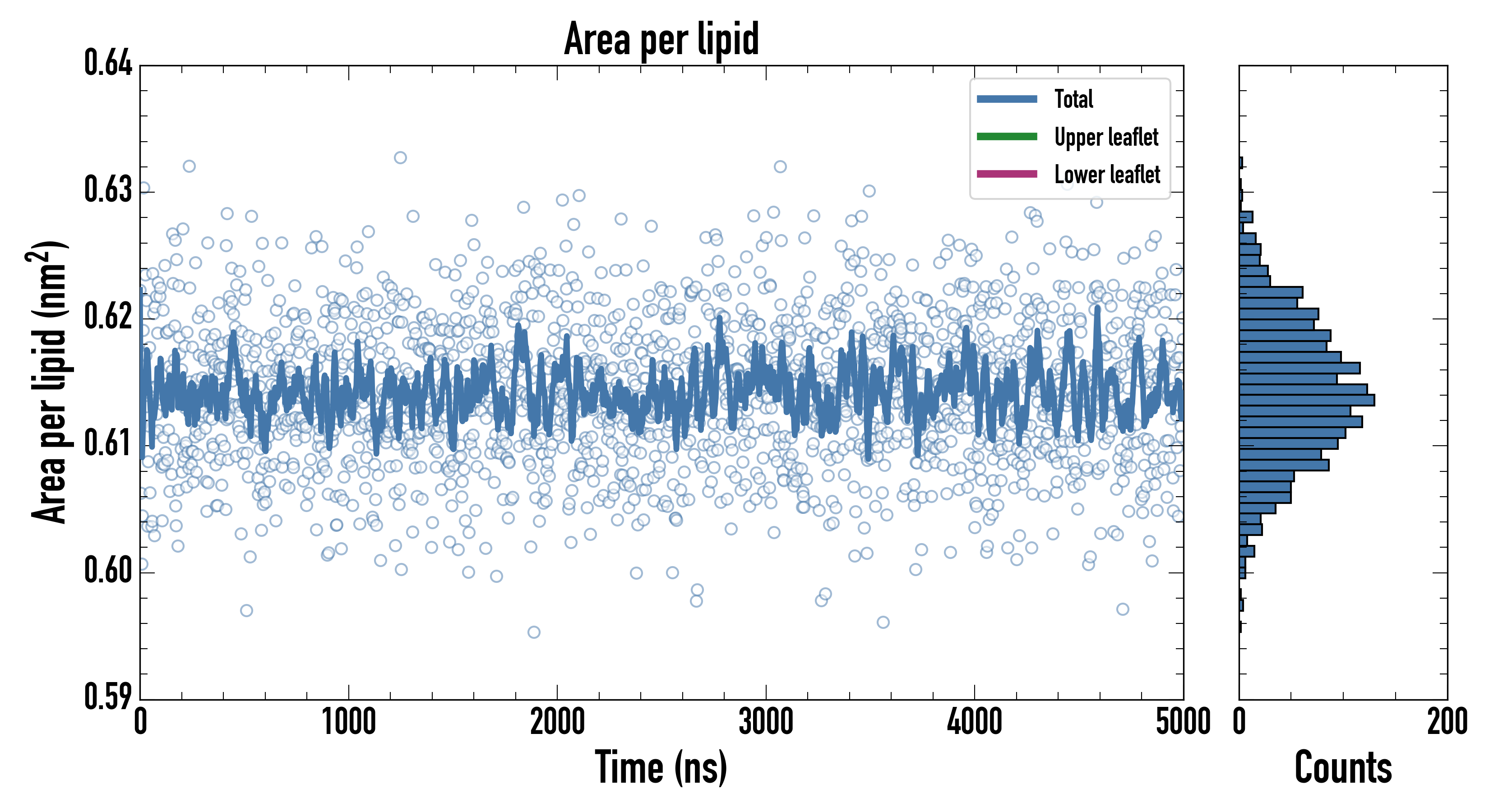 Upper leaflet (nm2): 0.61422200 ± 0.00086716