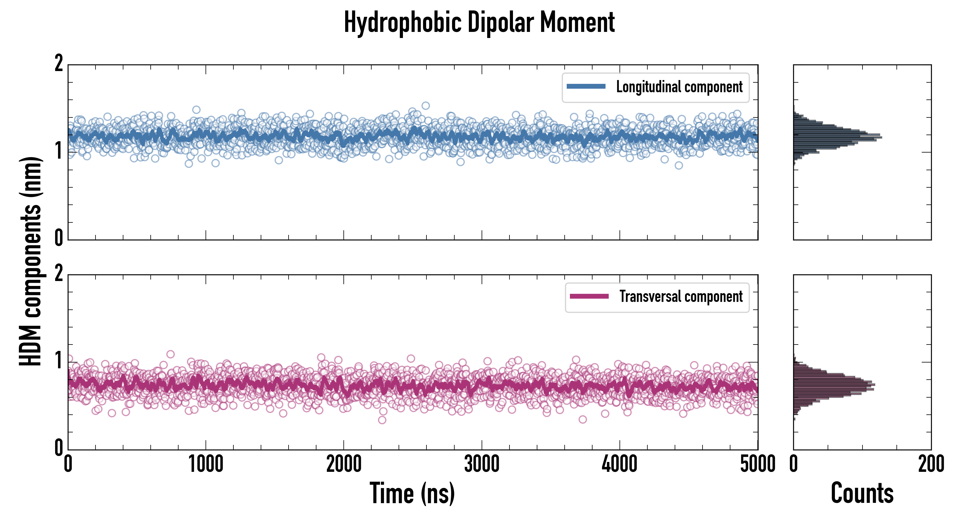 Longitudinal (e nm): 5.86 Transversal (e nm): 2.37 Hydrophobic Dipolar Moment (nm): 1.65