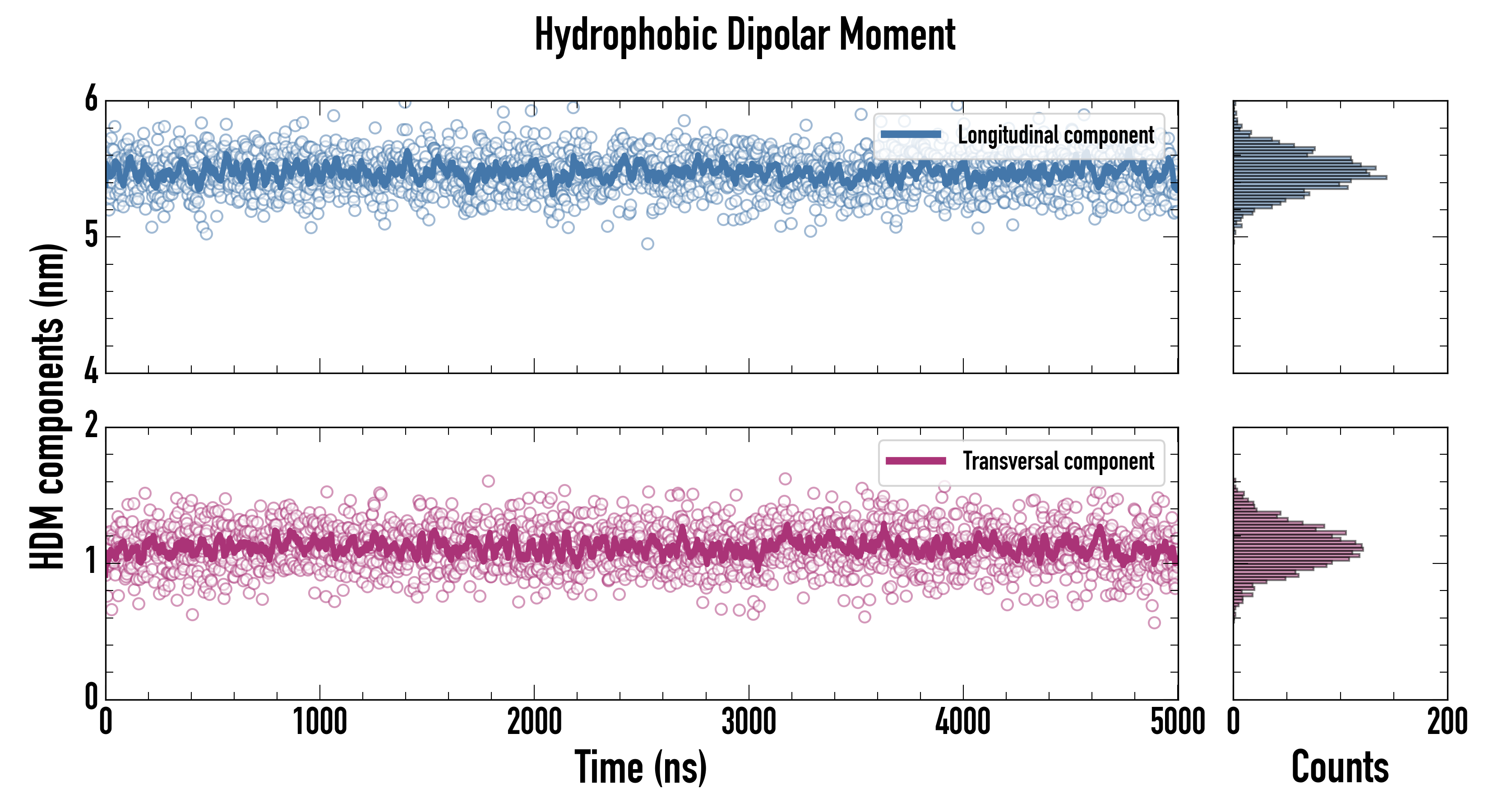 Longitudinal (e nm): 10.39 Transversal (e nm): 2.21 Hydrophobic Dipolar Moment (nm): 5.8