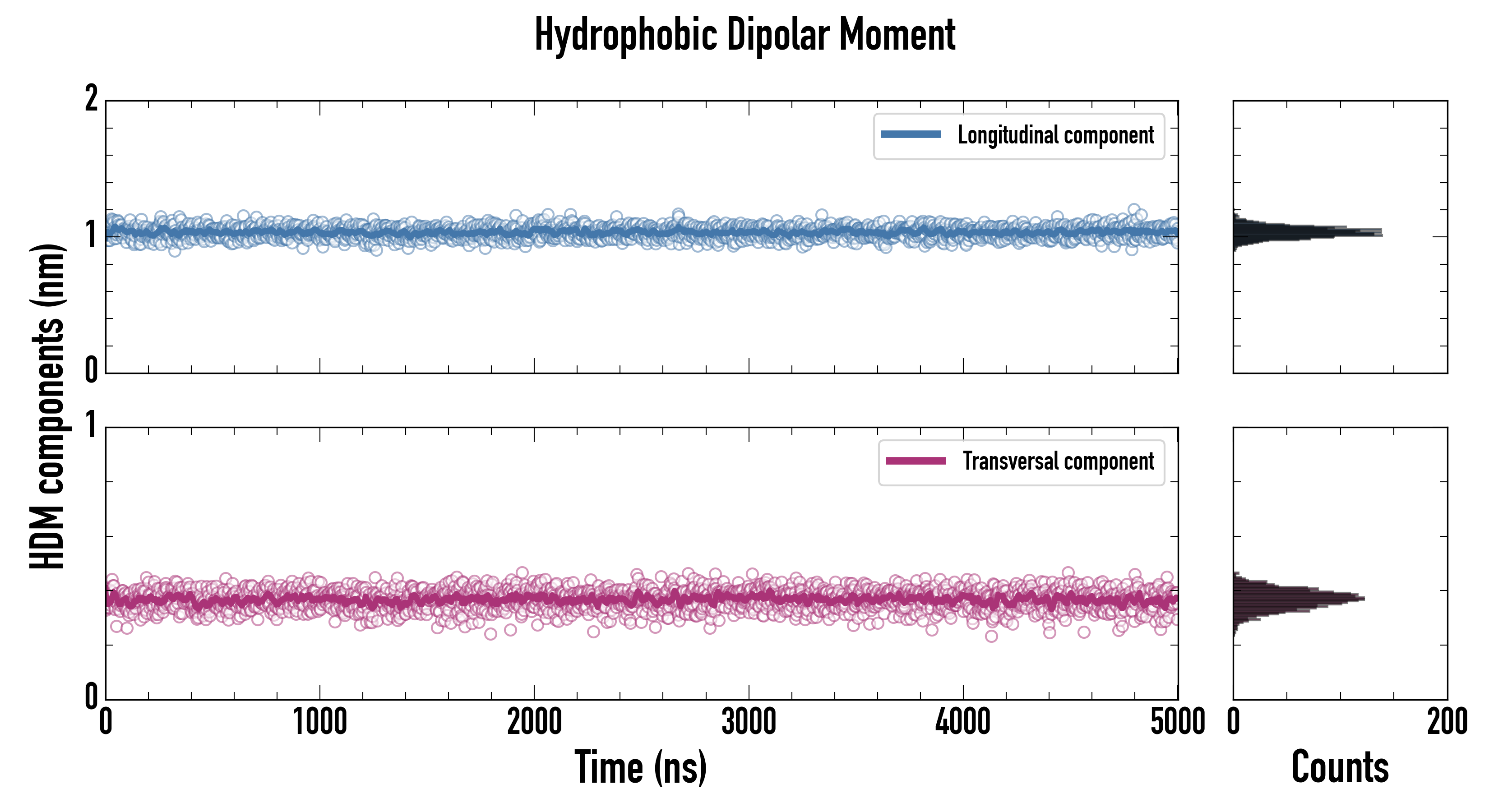 Longitudinal (e nm): 2.04 Transversal (e nm): 0.8 Hydrophobic Dipolar Moment (nm): 1.16